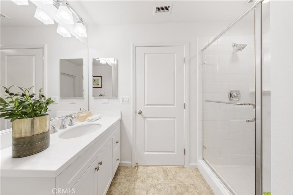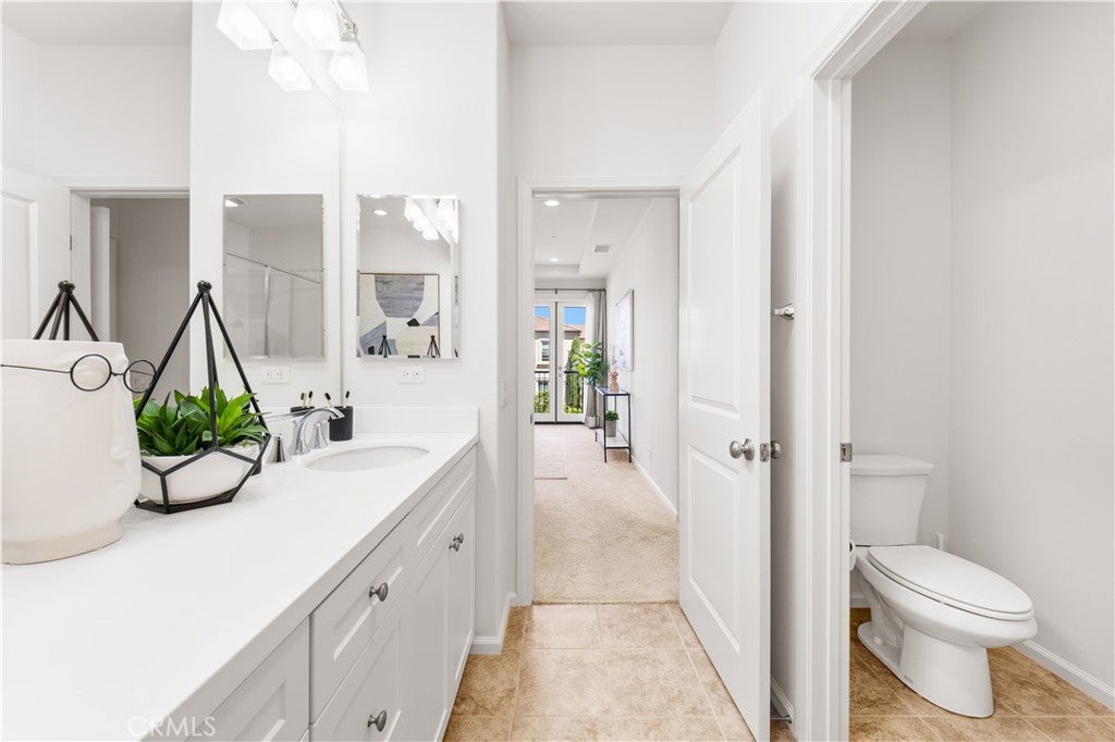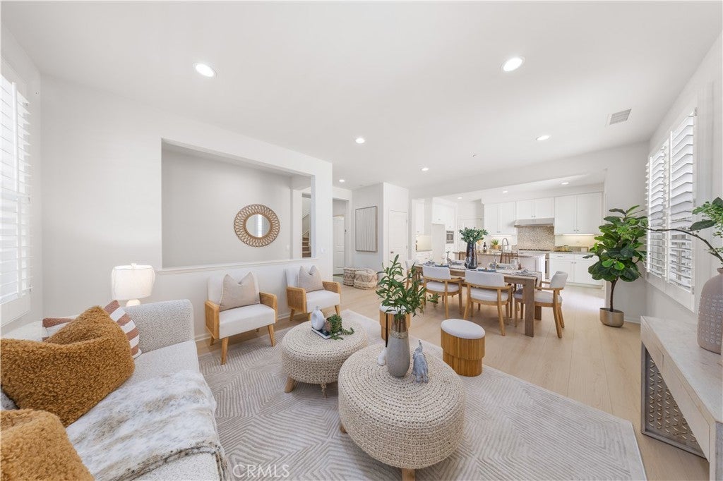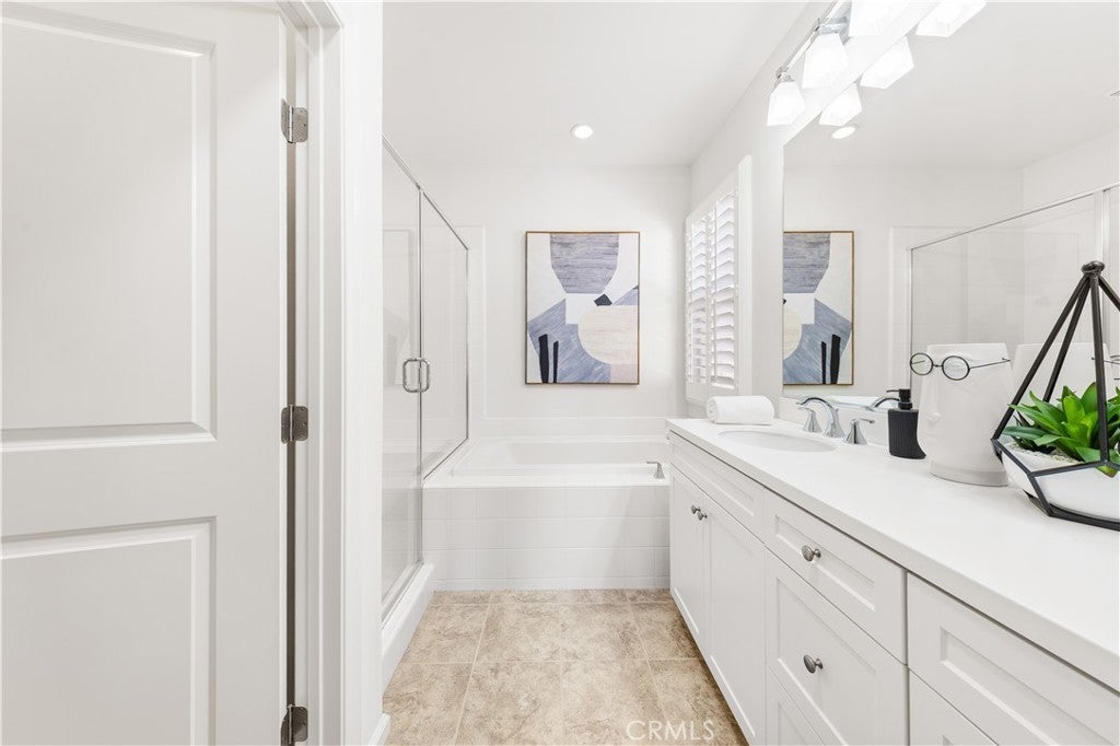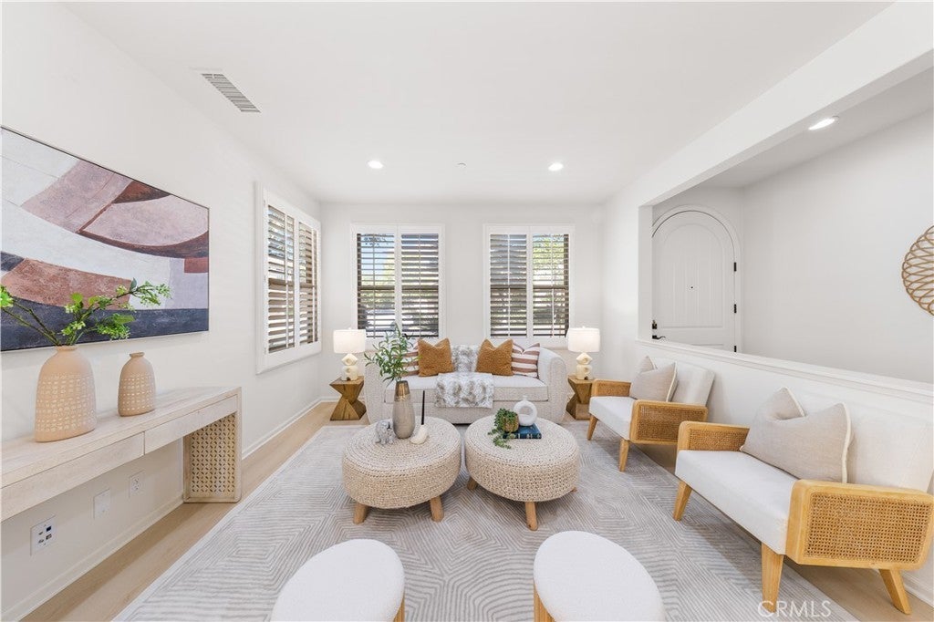 Welcome to 54 Jade Flower in Cypress Village — a beautifully designed 3-bedroom, 3-bathroom home offering 1,619 sq. ft. of modern living in the desirable Caserta community. This open-concept floor plan features a spacious living area that flows seamlessly into the contemporary kitchen, creating the perfect space for gatherings and entertaining. A highly sought-after main floor bedroom and full bath provides flexibility for guests or a home office. Upstairs, two additional bedrooms each feature their own ensuite bathroom, along with a convenient laundry room. The primary suite includes a relaxing bathtub and abundant natural light. Upgrades include new laminate flooring and plantation shutters throughout, enhancing both style and functionality. The home also offers an enclosed patio with additional storage and a two-car garage. Residents of Cypress village enjoy access to resort-style amenities, including sparkling pools, spa, lush parks, and scenic walking trails. Located within the boundaries of award-winning Cypress Village Elementary, Jeffrey Trail Middle, and Irvine High School, this home also provides easy access to freeways, toll roads, shopping, and dining.