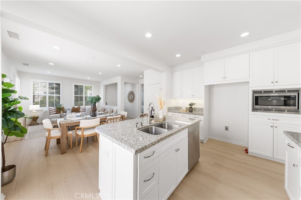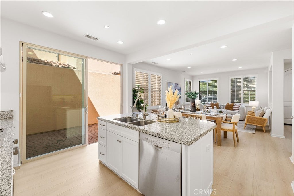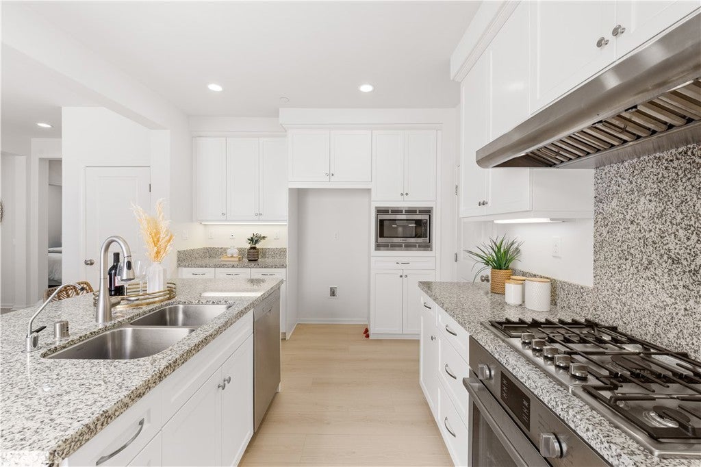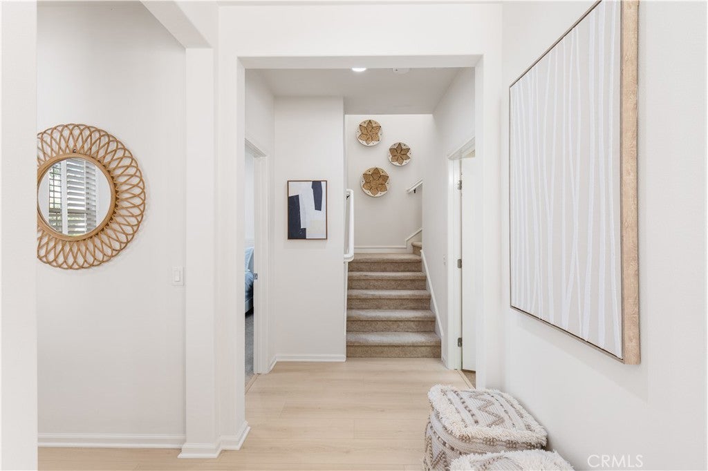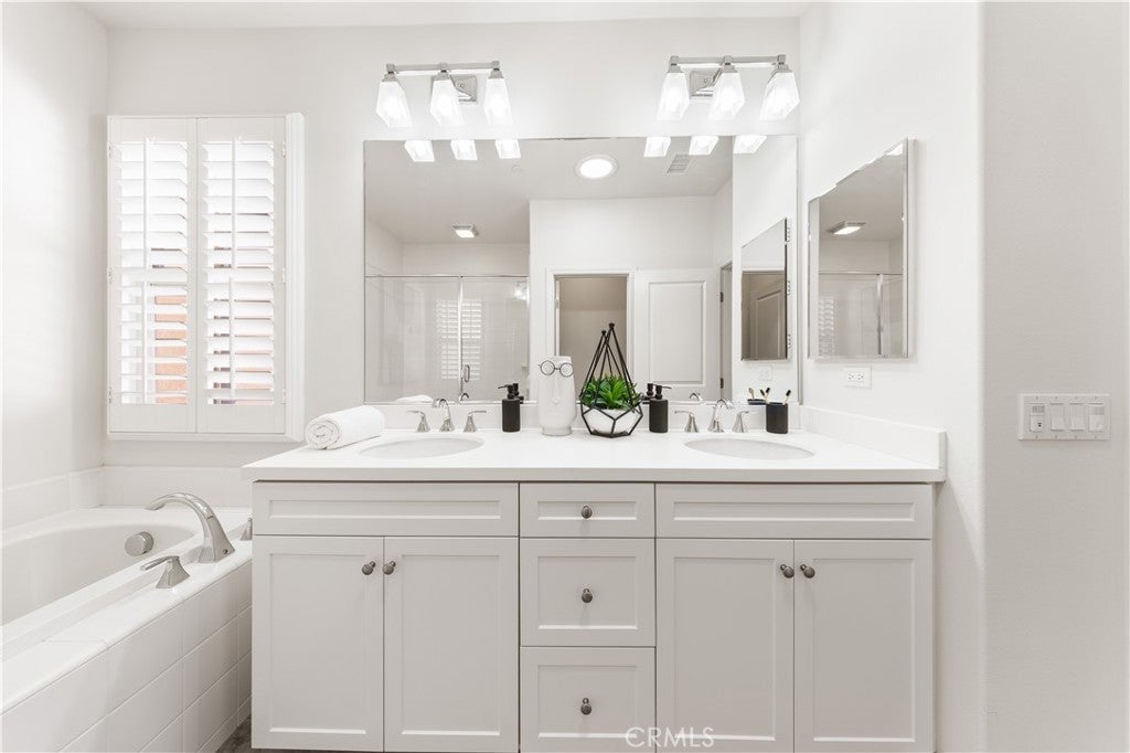 Welcome to 54 Jade Flower in Cypress Village — a beautifully designed 3-bedroom, 3-bathroom home offering 1,619 sq. ft. of modern living in the desirable Caserta community. This open-concept floor plan features a spacious living area that flows seamlessly into the contemporary kitchen, creating the perfect space for gatherings and entertaining. A highly sought-after main floor bedroom and full bath provides flexibility for guests or a home office. Upstairs, two additional bedrooms each feature their own ensuite bathroom, along with a convenient laundry room. The primary suite includes a relaxing bathtub and abundant natural light. Upgrades include new laminate flooring and plantation shutters throughout, enhancing both style and functionality. The home also offers an enclosed patio with additional storage and a two-car garage. Residents of Cypress village enjoy access to resort-style amenities, including sparkling pools, spa, lush parks, and scenic walking trails. Located within the boundaries of award-winning Cypress Village Elementary, Jeffrey Trail Middle, and Irvine High School, this home also provides easy access to freeways, toll roads, shopping, and dining.