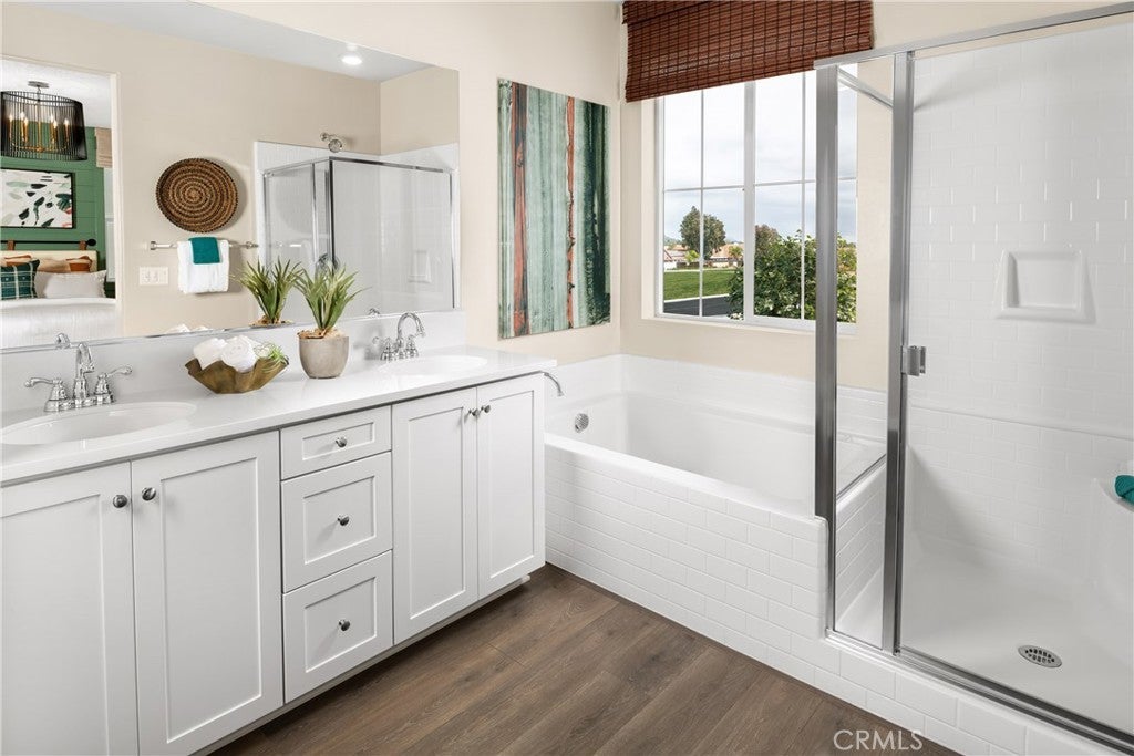 This professionally designed model home in the gated Iris Park community of Moreno Valley is move-in ready, fully landscaped — with fantastic seller incentives available! Ask about limited-time incentives and flexible financing options that may help to reduce closing costs or monthly payments. If you’ve been renting and dreaming of a home that’s fully finished, low maintenance, and just feels “done,” this is the one. The Lansing floor plan offers 4 bedrooms, 2.5 bathrooms, a 2-car garage, and an open-concept layout that’s both comfortable and functional. The first floor features a spacious Great Room and dining area that flow into a modern kitchen with a large island, quartz countertops, upgraded cabinetry, and walk-in pantry. Upstairs, you’ll find all four bedrooms, including a generously sized Primary Suite with dual sinks, a walk-in shower, and a large walk-in closet. A flexible loft adds extra space for a home office, media zone, or play area. The laundry room is conveniently located upstairs near all bedrooms. As a professionally curated model home, it includes over $100,000 of designer-selected finishes, upgraded flooring, and complete landscaping — so you don’t have to worry about a thing. Just bring your furniture and move in. A full Solar System is Included!! Built by Beazer Homes, the nation’s #1 builder of DOE-certified Zero Energy Ready Homes, this home is designed for energy efficiency, long-term savings, and improved indoor air quality with Indoor Air Plus certification. Please note - the pictures are of the actual home!