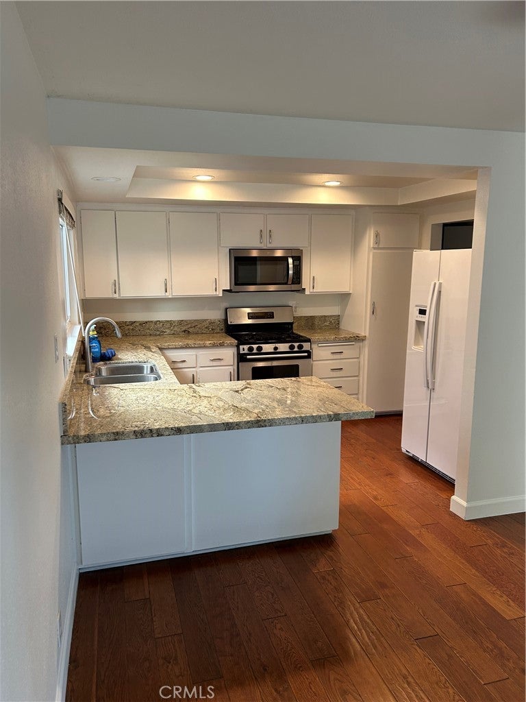 Beautiful 2 bedroom 2 bath lower unit with granite kitchen countertops, a breakfast bar, gas oven/range, refrigerator, dishwasher and microwave. This unit is light and bright with wood flooring in the kitchen and dining area and new carpet in the living room and bedrooms. Private covered patio off the kitchen and a 1 car garage with new garage door opener. Washer/dryer are included and 1 additional parking spot in front of garage. Close to Capo Beach, parks, and elementary school. Must view property to apply. NO PETS. NO SMOKING.
