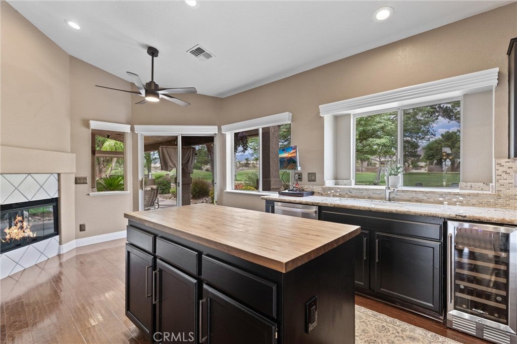 Timeless Elegance on the Golf Course at Mission Lakes. Welcome to your classic desert retreat perfectly situated on the 5th hole of the prestigious Mission Lakes Country Club. This beautifully upgraded home combines timeless design with modern comfort, offering both serenity and sophistication. Step inside and be greeted by soaring cathedral ceilings and elegant wood floors that flow seamlessly throughout. The heart of the home is the chef’s kitchen, complete with a large island, stylish backsplash, and plenty of space to cook and entertain. A cozy double fireplace connects the living room and kitchen, creating warmth and ambiance in both spaces. The home features a guest bedroom with its own private bath, ensuring comfort for family and friends. The stunning primary suite boasts a spa-inspired bathroom with a spacious shower and captivating views of the golf course, offering a daily reminder of the beauty that surrounds you. Outside, the huge 8,700 SF lot is beautifully landscaped, providing multiple spaces to relax and enjoy the gorgeous golf course and mountain views—including those famous desert sunsets. A 3-car garage with abundant storage completes this exceptional property, making it as functional as it is stylish. Tucked away in the heart of the desert, Mission Lakes Country Club delivers more than a home — it offers a lifestyle. Your ownership includes an Unlimited Golf Membership for Two on the breathtaking 18-Hole Ted Robinson–designed course. Need a little fine-tuning on your swing? No worries — our PGA Pros are ready to sharpen your game. Every day feels like a vacation here. Imagine mornings with a round of golf, afternoons lounging by the expansive pools and spas, and evenings dining with friends at the San Jacinto Restaurant and Bar & Lounge — all without ever leaving your community. Stay active with a fully equipped gym, bocce ball courts, wellness classes, and plenty of action on the tennis and pickleball courts. Social butterflies will love the holiday parties, themed events, and year-round activities that bring neighbors together like family. This is more than a community — it’s a resort lifestyle wrapped in mountain views. Don’t just buy a home… embrace the life you’ve been dreaming of at Mission Lakes Country Club. Your new lifestyle awaits!