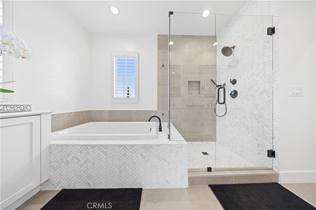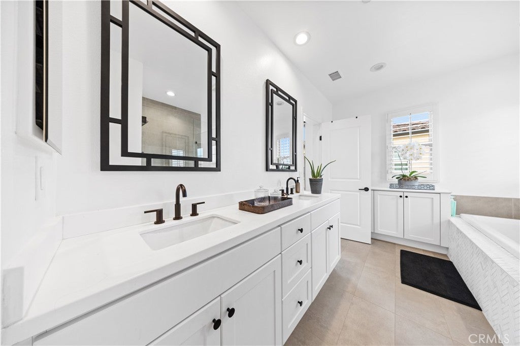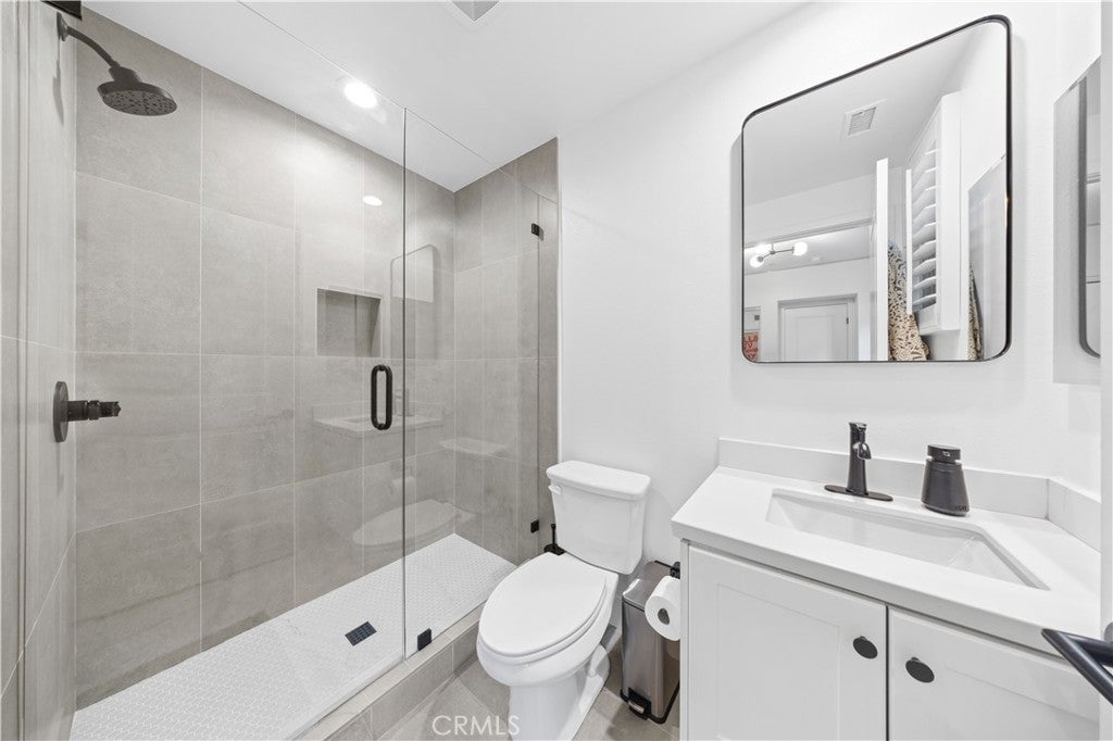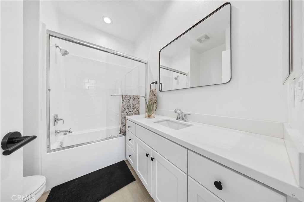 This beautifully upgraded, move-in ready home offers an ideal blend of luxury and privacy, with no common walls—providing the independence of a detached residence. Featuring 3 spacious bedrooms, 3.5 baths, and an abundance of natural light, this home is designed for modern living. The open-concept is highlighted by designer finishes and high-end luxury vinyl plank flooring throughout. The remodeled kitchen is a chef's dream, with sleek quartz countertops, stainless steel appliances, and custom cabinetry. Each bedroom boasts its own en-suite bathroom, ensuring ultimate comfort and convenience for all. The primary suite is a true sanctuary, featuring a spa-inspired bath and generous closet space. Additional amenities include a guest powder room, central A/C, recessed lighting, and a private outdoor patio perfect for relaxation. This home is completely turnkey, with modern upgrades and thoughtful details throughout. Located within an exceptional school district with top-rated schools nearby, this home not only provides a stylish and comfortable living space, but also offers access to outstanding educational opportunities for families. With convenient proximity to shopping, dining, and major freeways, this home truly offers the best of both comfort and convenience.