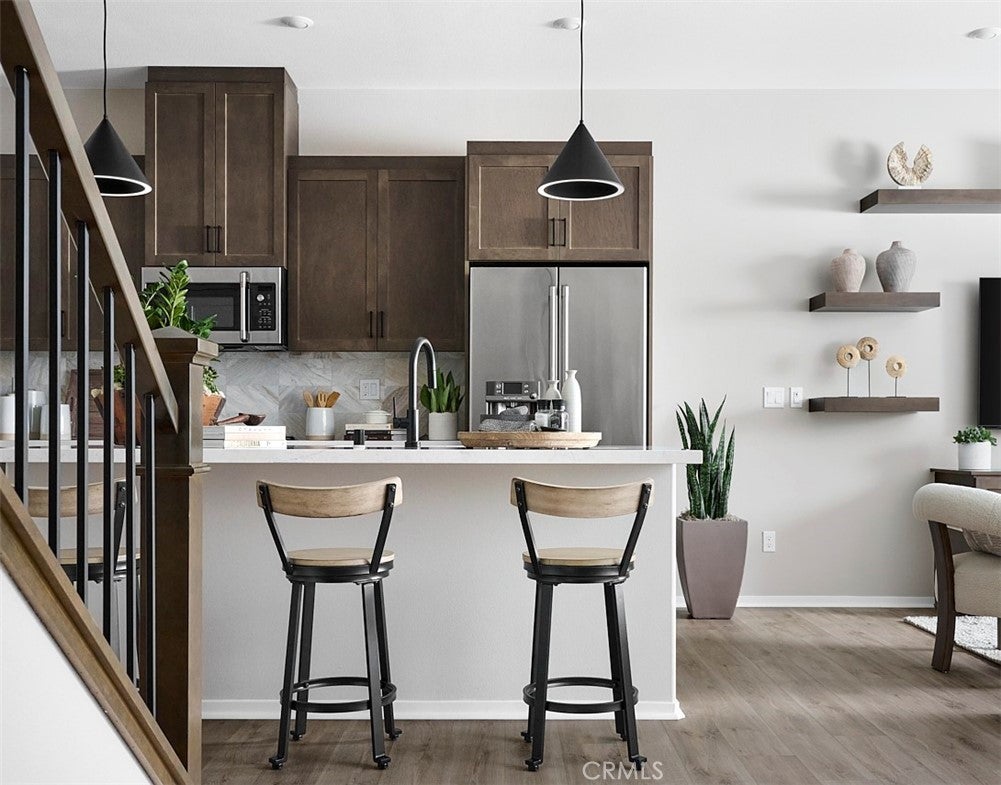 NEW CONSTRUCTION by Tri Pointe Homes in the heart Chino. TWO STORY Townhome with 2 Beds/2.5 Baths with Loft and an enclosed front courtyard and side x side 2 car garage. Fantastic location abutting a paseo and walkable to new Preserve Town Center and community pool/clubroom, pocket park. Home includes Stained Shaker cabinetry with dark pulls, polished Quartz kitchen + bath surfaces, additional recessed lighting, pendant light/ceiling fan prewire, SS GE appliances. Big things underway at Cedar Row in Chino with upcoming sports park, Legacy Academy School a short walk away and centralized access to 71, 91, 15, 60 commutes! Estimated move-in of November.