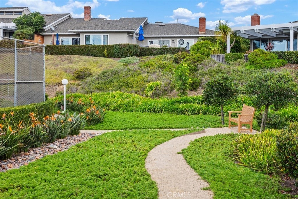 Beautiful single level, 2 bedroom, 2 bath in Seascape Village, San Clemente. You will feel at home when you enter this beautifully appointed home. Designer paint and touches throughout. This home boasts a lovely kitchen with granite counter tops and stainless steel appliances, dining room, family room and private enclosed patio with built in BBQ and expansive peak a boo ocean view. Clubhouse with tennis courts and pool. 2 car attached garage, laundry hook ups. End unit offering expansive grass area between units for additional beauty and privacy. Located close to shopping and freeway access. Just minutes from downtown San Clemente and beach access. Don't Wait! Make this wonderful space your new home!