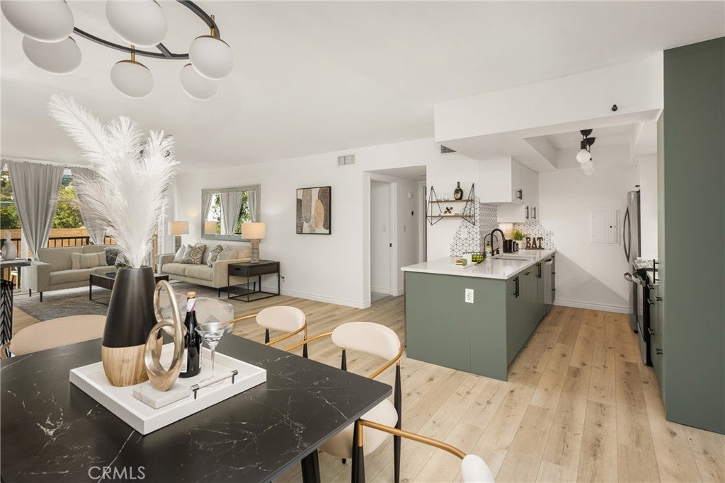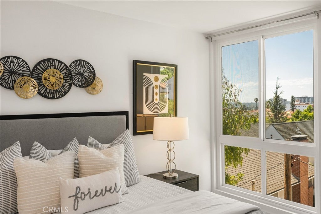 Welcome to Crescent Heights, where modern elegance meets vibrant city living. Perched in a prime location, this 2-bedroom, 2-bathroom condo boasts sweeping views of the scenic West Hollywood Hills—offering a daily backdrop of natural beauty and urban sophistication. Step inside to an open, light-filled layout appointed with luxury vinyl plank flooring and chic, contemporary design choices. The remodeled kitchen impresses with quartz countertops, custom cabinetry, and designer fixtures—perfectly suited for both everyday living and effortless entertaining. The spacious living and dining areas flow seamlessly onto a private balcony, an ideal spot to sip morning coffee or toast the sunset against a hillside silhouette. Throughout the home, thoughtfully selected finishes and stylish décor create a cohesive sense of calm and modern refinement. Each bedroom serves as a peaceful retreat, complete with generous closet space and en-suite or adjacent bathrooms. The bathrooms mirror the home’s contemporary design with clean lines and updated fixtures, blending form and function with ease. Enjoy 2 assigned (non-tandem) parking spaces for maximum convenience. Additional highlights include access to premium community amenities: a sparkling pool, fitness center, and 24/7 security cameras. With Sunset Boulevard and Melrose Avenue just steps away, you'll enjoy unmatched walkability to world-class shopping, dining, and nightlife. Whether entertaining in style or enjoying a quiet evening at home, this is luxury L.A. living at its finest.