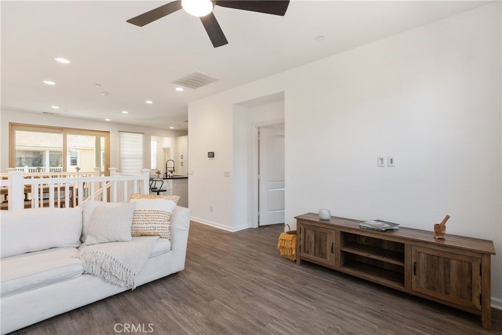 Welcome to 48 Jaripol Circle, located in the award-winning community of Rancho Mission Viejo and the charming Sage neighborhood. Recently refreshed with new paint, plush carpet, and modern fixtures, this home offers a warm yet contemporary atmosphere designed for both comfort and style. Step through the inviting front porch into a light-filled foyer, leading to a versatile bedroom with an en-suite bath—perfect for guests, multigenerational living, or a private home office. This level also features a discreet stacked laundry area, generous hallway storage, and direct access to the oversized two-car garage, with plenty of room for storage, a gym, or a workbench. Upstairs, soaring ceilings and abundant natural light define the open-concept living area. At the heart of the home, the gourmet kitchen showcases stainless steel appliances, sleek countertops, a spacious island with seating, and abundant cabinetry. The dining area and great room flow seamlessly to a covered balcony, ideal for outdoor dining or quiet evenings. The upper-level primary suite provides a private retreat with dual sinks, quartz countertops, and a walk-in shower. Blending elegance with practicality, this home is designed for both style and everyday efficiency. As a Rancho Mission Viejo resident, you’ll enjoy exclusive access to world-class amenities: resort-style pools and spas, fitness centers, sports courts, scenic trails, community farms, playgrounds, gardens, dog parks, and unique gathering spots like a coffee shop, arcade, and fire pits. Nearby retail and easy access to Los Patrones Parkway and the 241 Toll Road make everyday living effortless. 48 Jaripol Circle is a seamless blend of design, flexibility, and the vibrant Southern California lifestyle.