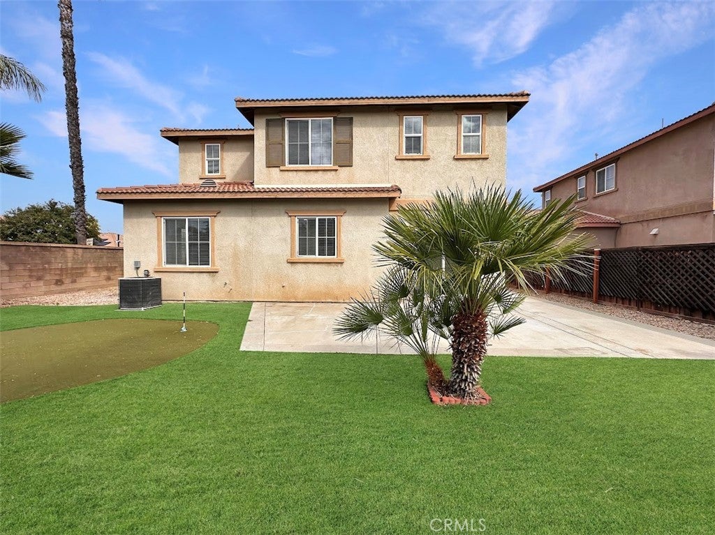 Welcome to this beautifully upgraded 4-bedroom, 3-bath home on a desirable corner lot in the gated community of The Lakes in Menifee. This turn-key family home showcases designer finishes throughout and includes a downstairs bedroom—ideal for guests.  The spacious living room offers a cozy fireplace, media niche, and plenty of natural light—perfect for relaxing or entertaining. The modern kitchen features a center island, quartz countertops, recessed lighting, stainless steel appliances, and a breakfast nook.  Upstairs, the primary suite offers a walk-in closet and a spa-like bath with dual sinks, quartz counters, a soaking tub with separate shower.  Step outside and into your backyard paradise with a 3-hole artificial turf putting green, good size patio and plenty of room to play.  Residents enjoy resort-style amenities including private lakes, pools with water slides, a clubhouse, gym, BBQ areas, playgrounds, and scenic trails. Conveniently located near local schools, shopping, dining, and freeway access—this home offers the perfect blend of comfort, style, and community.