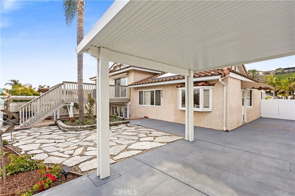 An outstanding opportunity to lease this beautifully maintained single-family residence in the highly sought-after Thunderbird Capistrano community of Dana Hills. This spacious and light-filled 4-bedroom, 3-bathroom home offers a rare combination of comfort, privacy, and functionality. The property features a generous, fully fenced and terraced backyard, approximately 10,212sqft lot, perfect for entertaining or relaxing after a long day, with mature fruit trees and peekaboo ocean views. Outdoor living is further enhanced by a large upper-level deck connected to the backyard via stairway, along with multiple paved patio areas ideal for gatherings or quiet evenings. Inside, the main level welcomes you with a bright and open living area featuring a cozy fireplace and plantation shutters. The kitchen overlooks the backyard and includes a casual seating area for easy conversation while cooking. Adjacent to the kitchen, the dining space flows directly into the main living room, creating a seamless space for entertaining. Step down to the lower level, where a spacious family/bonus room includes a built-in wet bar and direct access to the outdoor patio—perfect for additional family living space, a media room, or a work-from-home setup. The upper level offers four well-appointed bedrooms, including a generous primary suite with a tastefully upgraded bathroom, custom closet, and private sliding door access to the upper deck. Additional highlights include a three-car garage with direct access from the bonus room, extra driveway parking for three vehicles, and a rare RV-sized parking area along the side of the home. This home is located just a short walk from Thunderbird Park, which features a playground, picnic areas, a half basketball court, and a sports field. You're also minutes away from Doheny Beach, Dana Point Harbor, the Lantern District, and Ocean Ranch Shopping Center with Trader Joe’s, Cinepolis Luxury Cinemas, restaurants, and more. With easy access to the 5 Freeway and a highly desirable coastal lifestyle, this is truly a must-see property that offers the best of South Orange County living.