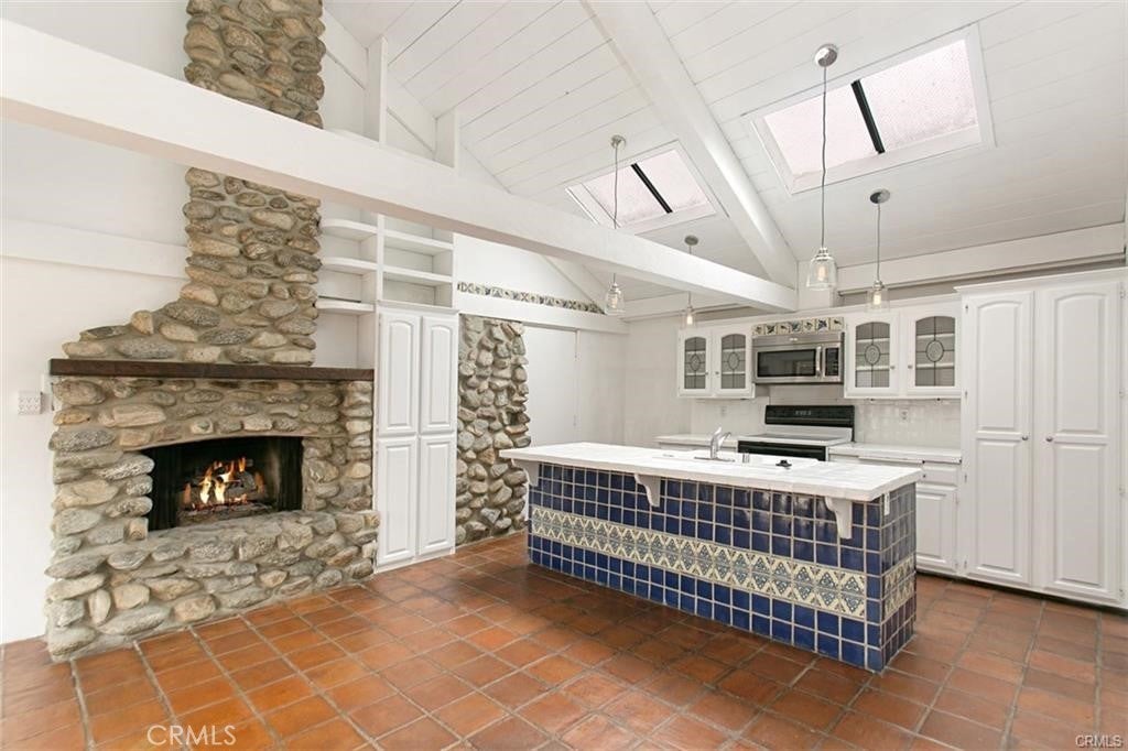 - Interior FeaturesBreakfast Bar, Eat-in Kitchen, Open Floorplan, Tile Counters, All Bedrooms Down, Walk-In Closet(s), Beamed Ceilings, Brick Walls, Built-in Features