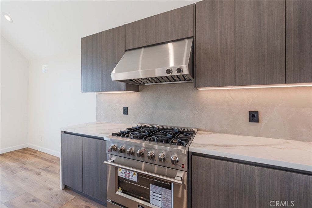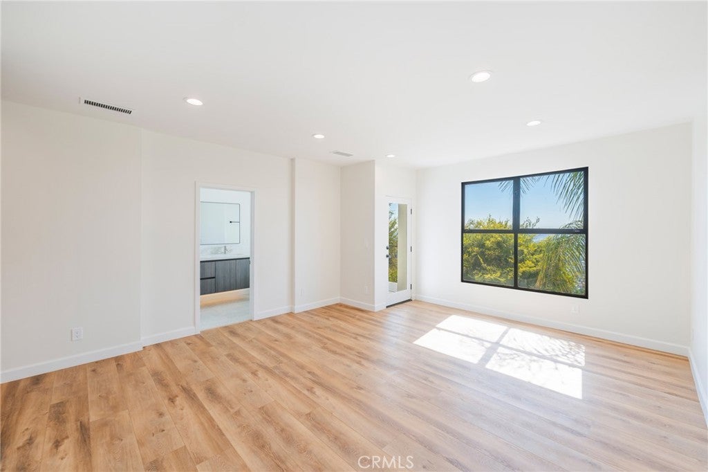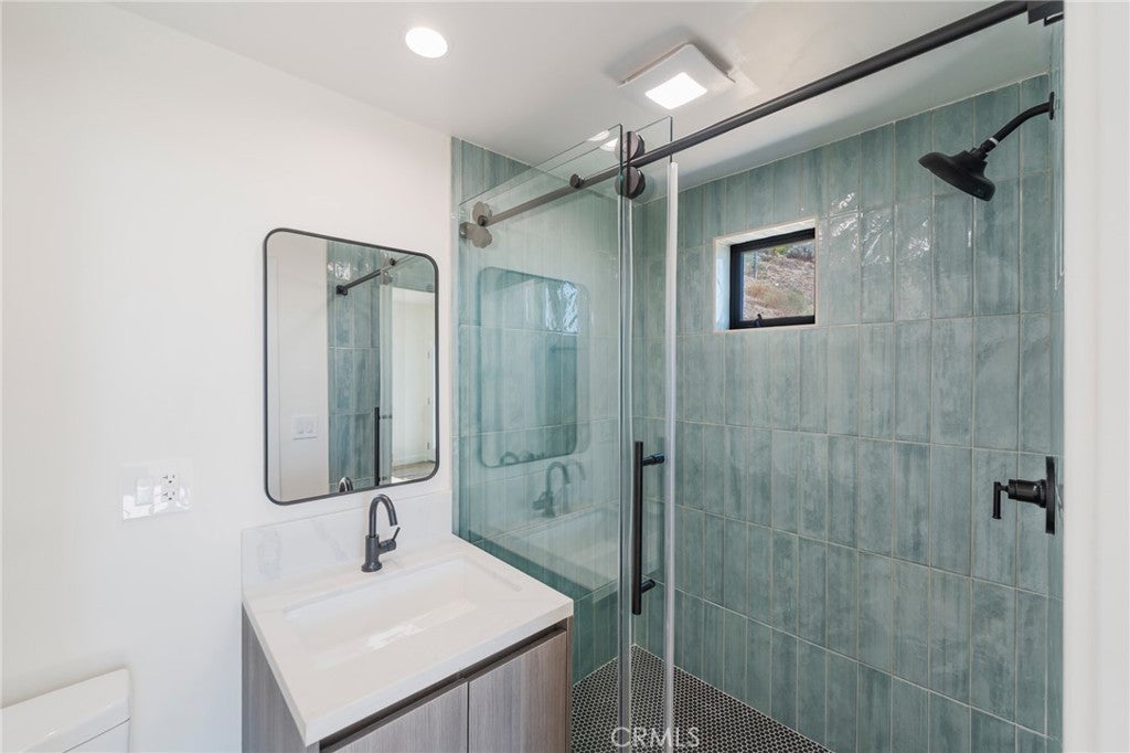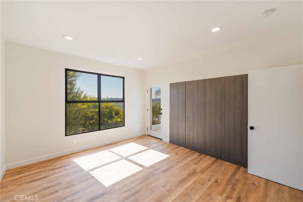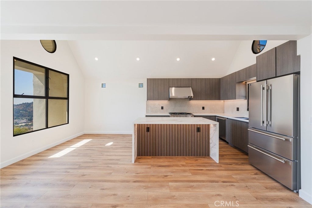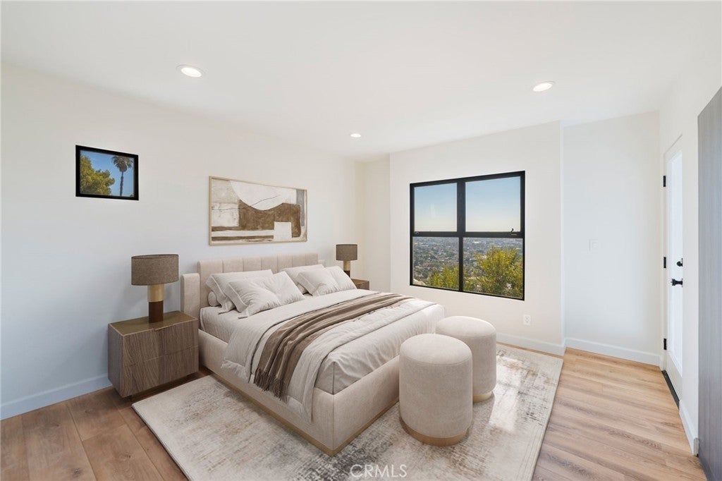 Stylish and contemporary, this beautifully updated Mount Washington home showcases modern finishes and breathtaking panoramic views stretching toward Downtown Los Angeles. The open-concept great room features vaulted ceilings, wide-plank flooring, and a sleek fireplace that creates an inviting atmosphere for entertaining or relaxing. The chef’s kitchen is a standout with a striking waterfall-edge island, marble-style countertops, custom flat-panel cabinetry, and all-new stainless-steel appliances, including a professional-grade range, French door refrigerator, and built-in microwave. The primary suite offers a spa-like retreat with a freestanding soaking tub, a floating vanity with marble counters, and a glass-enclosed shower. A custom walk-in closet with LED lighting adds both functionality and flair. Additional highlights include a tankless water heater, recessed lighting throughout, modern bathrooms, and a spacious two-car garage with an epoxy floor. Perched on a quiet hillside street, this home offers stunning views, sophisticated design, and everyday comfort, close to Highland Park, Eagle Rock, and Downtown LA.
