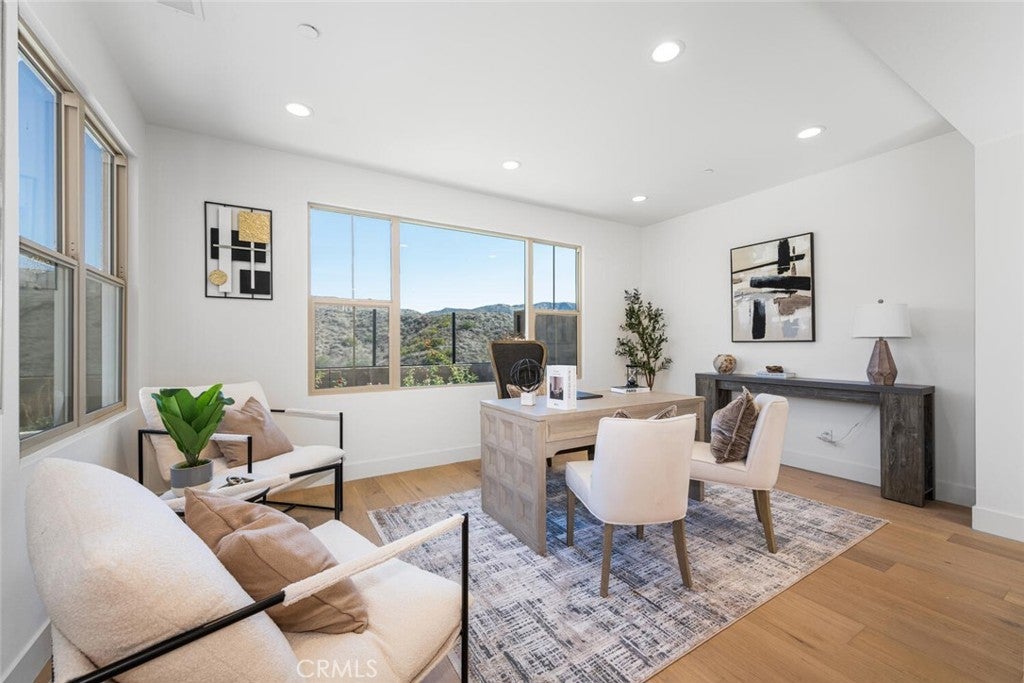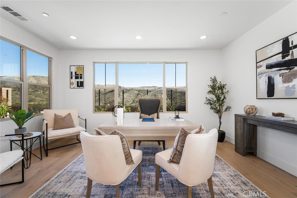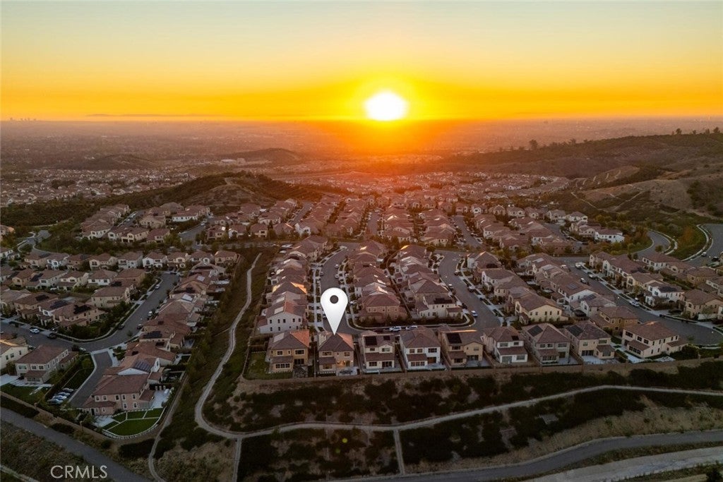 Experience the best of Irvine living in this never-lived-in residence located in The Reserve at Orchard Hills, a 24-hour guard-gated community surrounded by avocado orchards and hillside trails. Part of the award-winning Irvine Unified School District, this home combines architectural elegance, natural light, and thoughtful design within one of Orange County’s most sought-after neighborhoods. Capturing unobstructed mountain views, the residence embraces seamless indoor-outdoor living through an expansive three-panel sliding glass wall that opens to a custom backyard with tiled patio, turf, gardens, and irrigation system. Inside, every detail is intentional—white-oak engineered hardwood floors, recessed lighting, and 9-foot ceilings create a bright and refined atmosphere. The chef’s kitchen is equipped with a Wolf 6-burner cooktop, Sub-Zero refrigerator, built-in oven and microwave, deep pantry, quartz countertops, and soft-close cabinetry with pot-and-pan drawers. The open-concept layout connects the kitchen, great room, and outdoor living area—ideal for gatherings and relaxation alike. The main-floor bedroom includes a nearby full bath with walk-in shower, offering flexibility for guests or multi-generational living. Upstairs, a spacious loft provides a secondary retreat for TV, study, or play. The primary suite features vaulted ceilings, a walk-in closet, freestanding soaking tub, dual vanities, and a designer tile walk-in shower with invisible drain. The upstairs laundry room includes a sink and additional cabinetry for convenience. Additional highlights include fully paid solar panels, smart-home capable, tankless water heater, and epoxy-finished garage floor. Residents enjoy resort-style amenities—clubhouse, multiple pools, parks, tot lots, and scenic walking trails. Ideally located approx 0.8 mi to Orchard Hills Shopping Center (Pavilions, Peet’s Coffee, CorePower Yoga, CVS), approx 1.2 mi to H-Mart, and approx 2 mi to CA-241 Toll Road for convenient access throughout Orange County. The Reserve at Orchard Hills offers a lifestyle immersed in nature and design. Winding trails connect to open spaces that capture the spirit of Irvine. Nearby amenities complement the area’s tranquil setting, while the home’s location ensures privacy and peace. With its fusion of modern innovation, timeless materials, and connection to landscape, 107 Somera represents the best of new Irvine living. Includes 3D walkthrough and video tour available on Zillow.