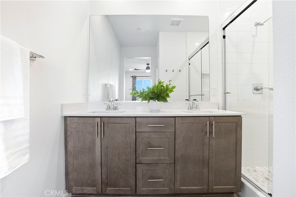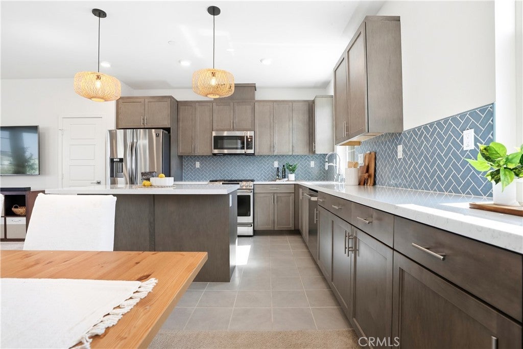 Welcome to 221 Gallop Court, a highly upgraded Paisley Plan 4 in the award-winning community of Rancho Mission Viejo! This one stands out for its thoughtful design, elevated finishes, and ideal location just steps from Ranch Cove Pool, Boulder Pond, and the community Park. From the moment you step inside, you’ll feel the quality. The home features a spacious open layout with extended kitchen cabinetry and counters, full-tile backsplash, quartz countertops throughout, and premium GE Café stainless appliances. The living room is wired for surround sound and features LED recessed lighting, a TV conduit, and added insulation for comfort and soundproofing. Upstairs, the owner’s suite includes double sinks, a full-height tile shower, a custom barn door, and mountain views of Santiago Peak. Every detail has been dialed in: epoxy garage floors, pendant lighting over the kitchen island, under-cabinet LED lights, ceiling fans, and smart dimmers throughout. The home also includes upgraded tile and carpet flooring, a full laundry room and one bedroom with a full bath on the 1st floor. The exterior has been beautifully finished with front and side hardscaping, landscaped patios, and café lights on the upper deck. Added perks include paid Solar with 9 panels, a Nuvia whole-house soft water and reverse-osmosis filtration system, EV car charger outlet, and even a digital smart lock for everyday convenience. Immerse yourself in the exceptional amenities of Rancho Mission Viejo, including the vibrant Ranch Camp, the state-of-the-art Ranch Cove community pool and gym, and countless recreational opportunities that define the unmatched lifestyle of this community. Exclusive to Rancho Mission Viejo residents are all amenities in the Villages of Sendero, Esencia, Rienda, and future Villages. There are community amenities for all from breath-taking resort-style pools and spas, Esencia school K-8, community farms, fitness centers, guest house, putting green, bocce ball courts, tennis and pickle ball courts, playgrounds, coffee shop, fire pits, an arcade and so much more!