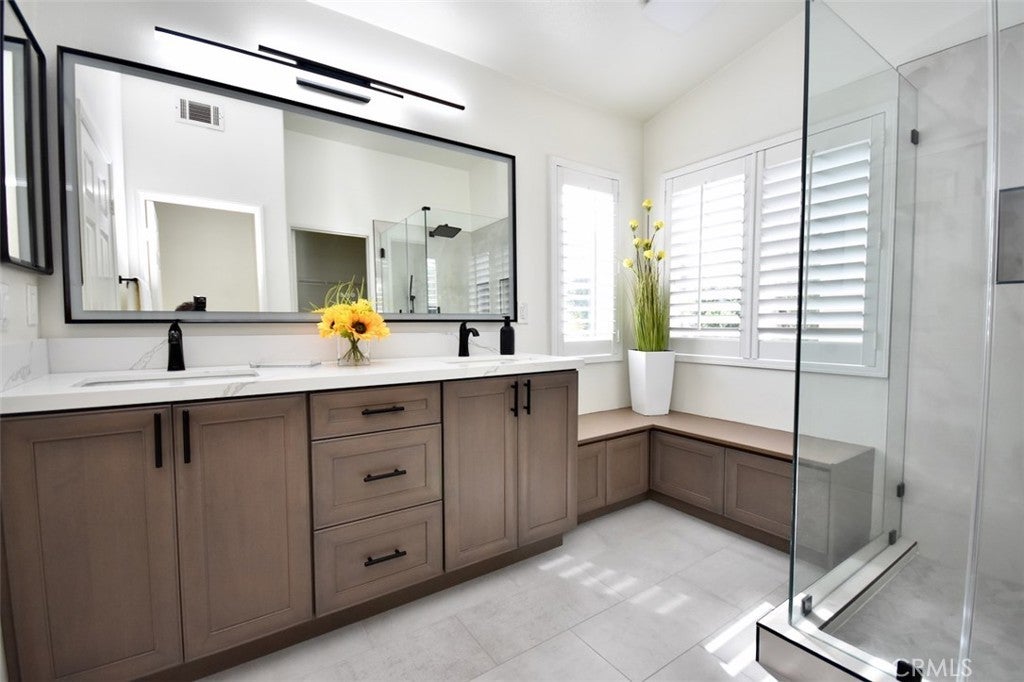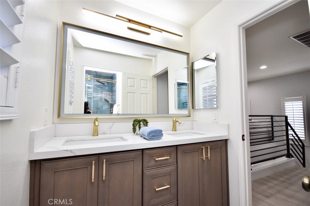 WOW! COMPLETELY REMODELED WITH ADDED LARGE LOFT! A MUST SEE SHOW PLACE BETTER THAN NEW! Quiet and private Westpark location with a full driveway! Over $200,000 spent on modern renovations with the highest quality materials including gorgeous new kitchen cabinets with a quartz waterfall countertop and breakfast bar. All stainless steel appliances. High Ceilings, dramatic great room-style home. All 3 bathrooms fully remodeled as well. All new hardware and recessed lighting throughout. Wood look low maintenance, durable porcelain flooring throughout. Professionally landscaped lush and green wrap-around backyard with 2 patios, fruit trees, and palm trees perfect for entertaining. Attached upgraded 2-car garage with epoxy flooring and 220 volts ready for an electric car charger. Additional features: Laundry on the 2nd floor with a 1-year old washer/dryer, mirrored closet doors, closet organizers, and a dual vanity in the 2nd bathroom. Sparkling association amenities include pools, spas, tennis courts, and so much more! Westpark offers an incredible central breezy location close to UCI, 405 & 5 fwys, low HOA fees, NO Mello Roos and is close to award winning, top-rated Irvine schools, including Plaza Vista K-8, UCI, shopping, entertainment, and so much more! Don't miss out on this rare and exceptional home!