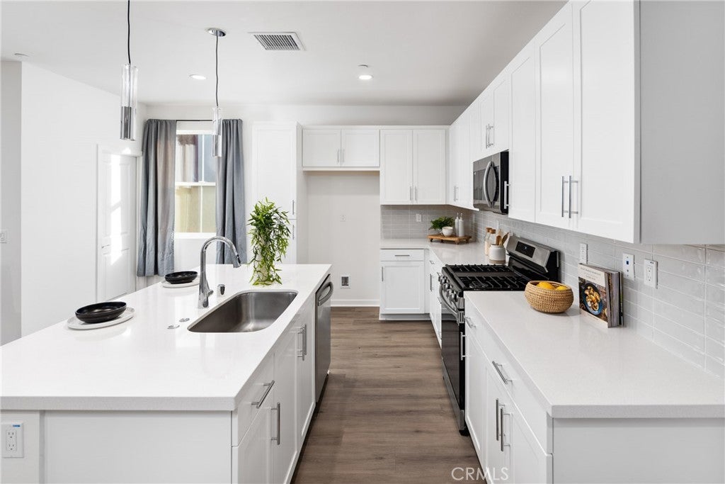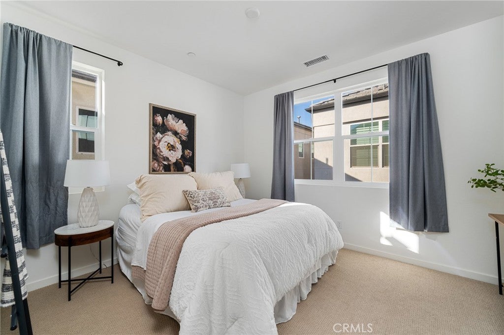 Welcome to Nuvo Parkside, a modern gated community in the heart of Ontario Ranch, developed by The New Home Company. Designed for today’s lifestyle, this vibrant neighborhood blends style, convenience, and sustainability with fully owned solar, smart home technology, and low-maintenance living. Built in late 2022, this beautiful 3-bedroom, 3-bath home offers 1,550 sq. ft. of thoughtfully designed living space. Step inside to find an inviting open layout with quartz countertops, shaker-style cabinetry, recessed lighting, dual-pane windows, and a convenient indoor laundry area—washer and dryer included. Durable vinyl and plush carpet flooring add comfort and modern appeal throughout. Enjoy resort-style amenities right at your doorstep, including a state-of-the-art fitness center, Olympic-sized pool, heated spa, playground, outdoor dining areas, fire pits, and EV charging stations. A spacious two-car attached garage and tankless water heater complete this exceptional home. Experience modern living at its finest—Nuvo Parkside is where comfort, community, and contemporary design come together beautifully.