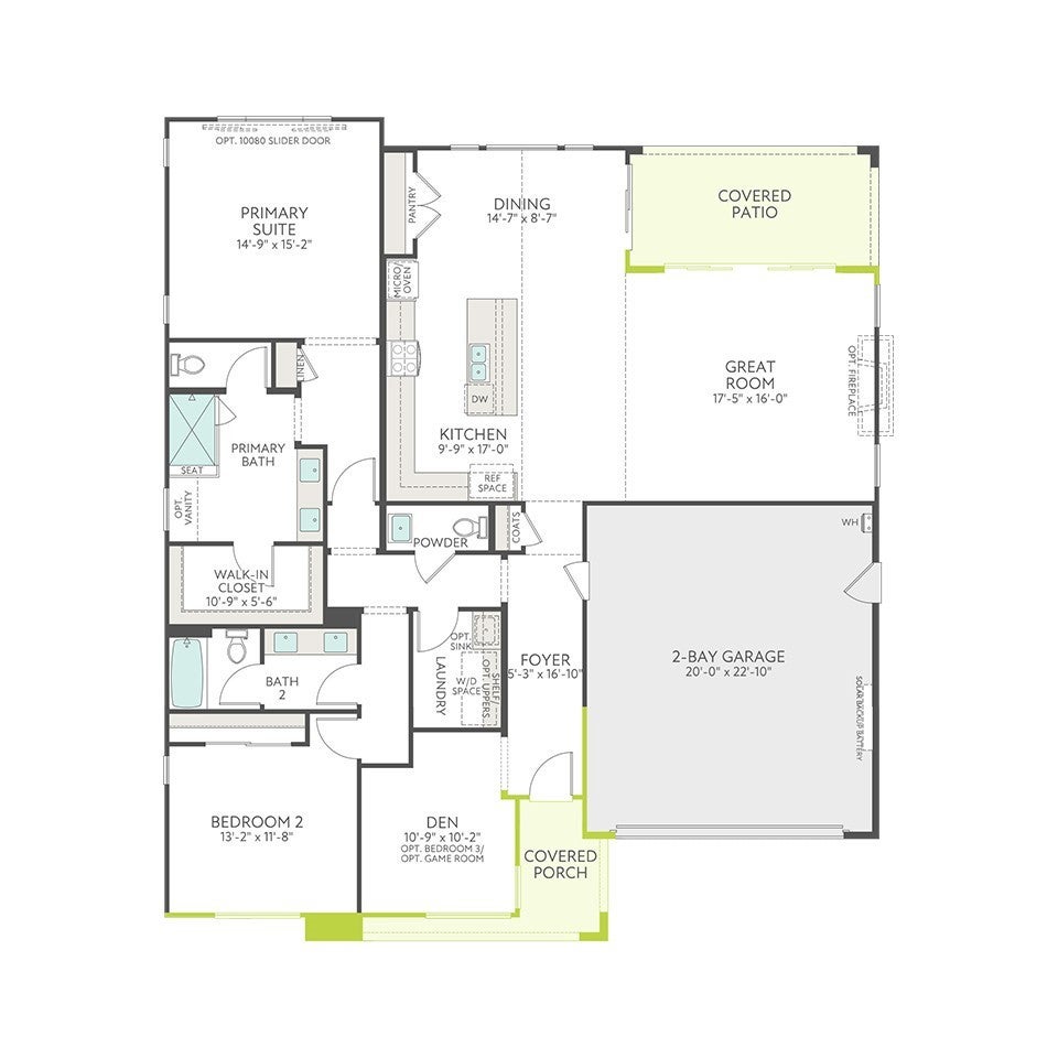 MOVE IN READY!-Altis at Skyline - An Active Adult Community by Tri Pointe Homes ~ Fall in love with single-story, open-plan living on this corner homesite. The great room is airy and bright, keeping everyone connected even while dinner is coming together in the kitchen. A second bedroom can welcome extended family or overnight guests. But wait, there’s more to love… ~Shaker-style cabinets, stained in a warm hue, with matte black pulls and light quartz counters with gray veining meet at white subway tile backsplash in the kitchen ~Luxury vinyl plank flooring, with both light and medium tones, covers the main living area; coordinating carpet, in a subtle pattern, covers bedroom floors ~Linen textured accent tile in the shower matches tile flooring in this dreamy primary bath Live the Altis lifestyle with a community clubhouse that includes a game room, event bar, workout studio, pool, hot tub, open space, community BBQ and monthly community events! Pickleball courts, putting green, trails and more!