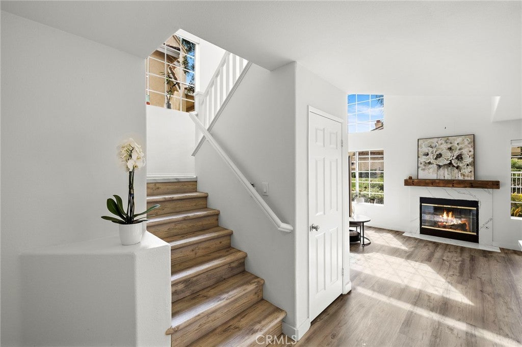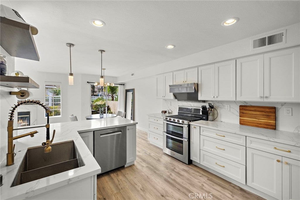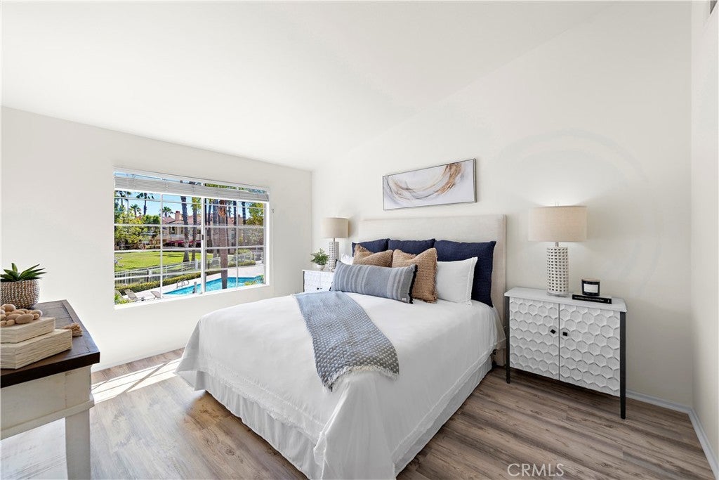 Welcome to 25186 Via Las Palmas, Laguna Niguel — an exceptional corner-unit condo located in the prestigious Del Prado Community. This beautifully upgraded two-story residence offers 1,377 square feet of bright and open living space, featuring 2 bedrooms, 2.5 bathrooms, and a prime position along the peaceful greenbelt for maximum privacy and tranquility. Inside, you’ll find soaring cathedral ceilings and expansive windows that fill the home with natural light. Recent renovations include modern kitchen cabinetry, new stainless-steel appliances (including a new stove and dishwasher), and remodeled bathrooms that blend comfort with contemporary style. Custom window coverings and refined finishes add a touch of sophistication throughout. The main level showcases an open-concept layout connecting the kitchen, dining, and living areas, complete with a cozy fireplace and direct access to a private patio—perfect for outdoor dining and entertaining. Upstairs, you’ll find two spacious master suites, each offering a private en-suite bathroom, while a convenient powder room serves guests on the main floor. Additional highlights include a two-car direct-access garage with laundry facilities and ample storage. Del Prado residents enjoy resort-style amenities, including two swimming pools, two spas, and beautifully maintained greenbelts. Conveniently located near Life Time Fitness, local restaurants, Yosemite Park, and the Laguna Niguel/Mission Viejo train station, this home offers both comfort and accessibility. Nearby shopping at Sprouts Farmers Market and top-rated schools, including Orange County Academy of Sciences and Arts, make this a perfect choice for modern living. With easy access to the 73 Toll Road and I-5 Freeway, this move-in-ready home perfectly blends coastal elegance, comfort, and convenience—an exceptional opportunity to experience the best of Laguna Niguel living.