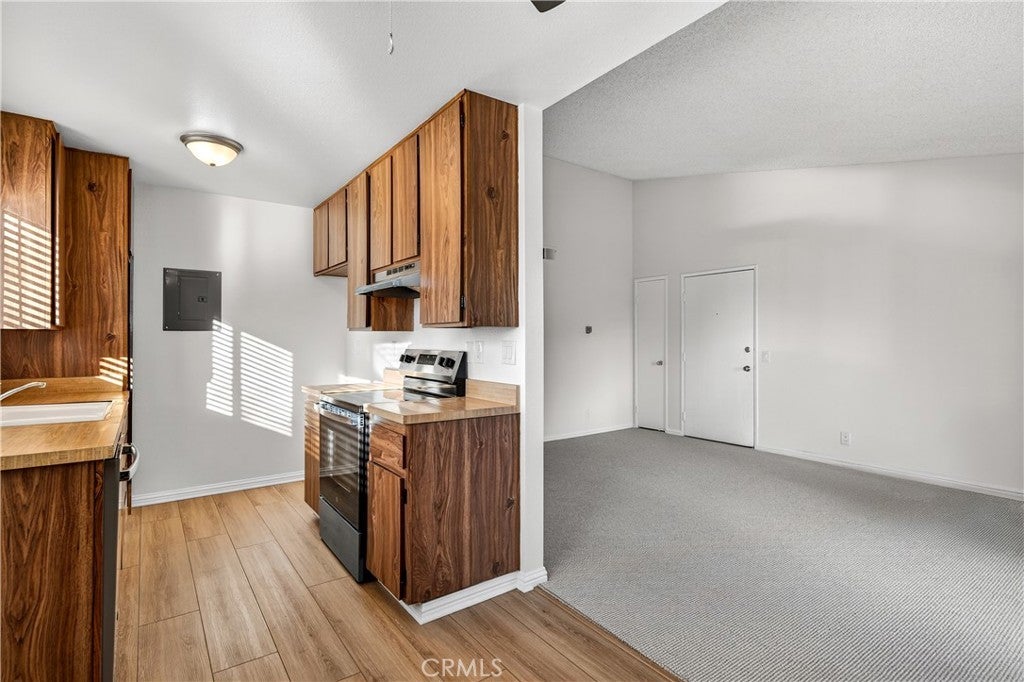Bright and airy upper-level condo in the Aliso Creek Villas community. This home features cathedral ceilings, a private balcony, walk-in closet, and inside laundry. Recent updates include new window treatments, fresh paint, new flooring, baseboards, kitchen appliances, new electrical panel, electrical switches, outlets, light fixtures, and ceiling fan. The kitchen and bath have been refreshed with new faucets, garbage disposal, water valves, and a new toilet, ensuring comfort and reliability throughout. The community offers a great combination of amenities including one carport, three swimming pools, paid water, trash, and basic fire insurance. Conveniently located near shopping, restaurants, schools, and easy access to the 5 freeway, this home is perfect for first-time buyers or investors seeking a great opportunity in a central Lake Forest location.