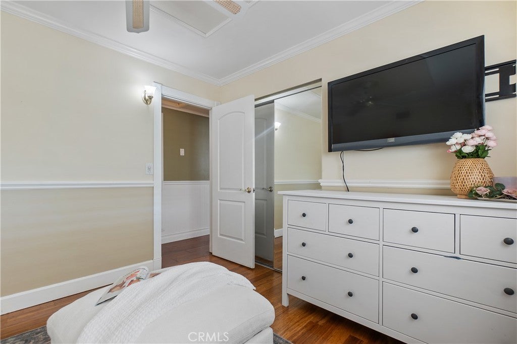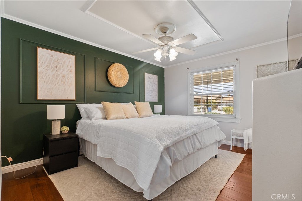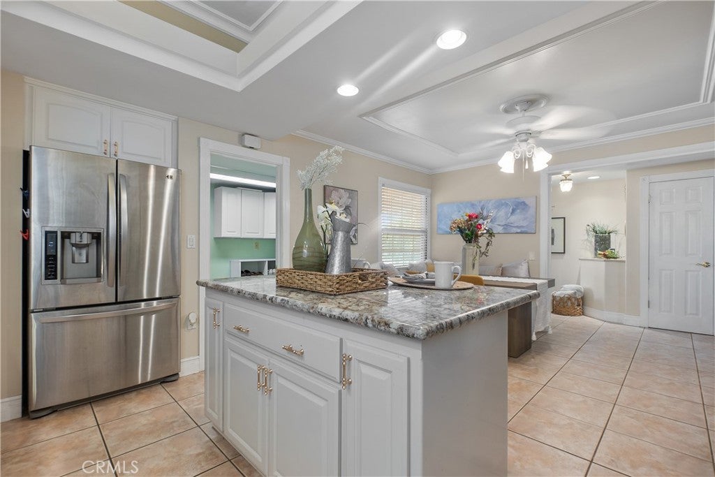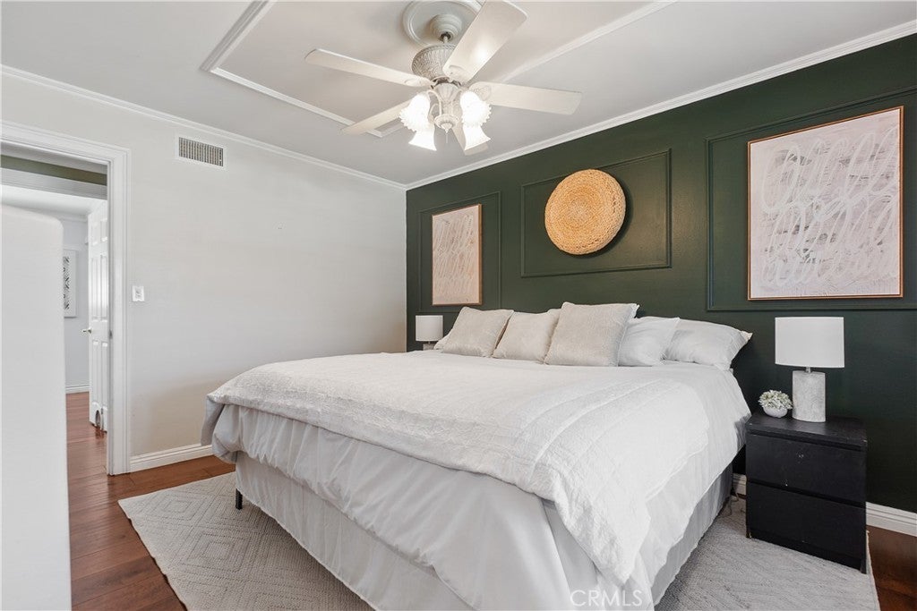 • Interior FeaturesBreakfast Bar, Ceiling Fan(s), Pantry, Recessed Lighting, Storage, All Bedrooms Down, Bedroom on Main Level, Main Level Primary, Primary Suite, Walk-In Pantry, Attic, Crown Molding, Eat-in Kitchen