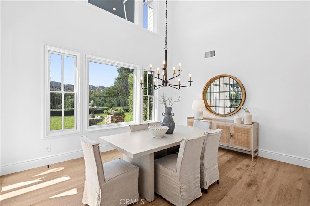 SWEEPING VIEWS And LOCATION! Amazing Sunset and Golf Course Views Overlooking the 18th Fairway of the North course at Coto de Caza. One of only 11 homes on a single loaded cul de sac street with a short walk to the Coto de Caza Golf and Racquet Club. The Simi-custom Home was designed and built by Stonefield Development with a tradition of beautiful and unique architectural design and with exceptional quality features throughout like the solid core 8 ft. wood doors, dual staircases, and walk-out view balcony off the primary bedroom. Three gas-burning fireplaces. The exquisite residence delivers the ultimate in luxury with natural elements in its open light and bright 5000+ sq ft. The residence is graced with a two-story volume ceiling in the Entry, Formal Living, and Dining Rooms. Comforts include 5 spacious bedrooms, 4.5 bathrooms, 4-car garage, Library/Office, and large open upstairs lounge area for the family or office plus A Separate area for reading/ study. Many large Picture windows (9 are new and installed by Anderson). The home has many modern upgraded features, including wide plank wood flooring throughout (except the two staircases), which has beautiful wool carpeting. All new Toto toilets, including a bidet washlet, are in the primary bathroom. Completely remodeled master bath with Newport Brass Fixtures, solid slab stone shower, and counter tops, a free-standing tub for that soothing bath while enjoying the stunning views. The open Kitchen has a large walk-in island with a Viking cook top, two new Viking dishwashers, and a spacious nook with a large picture window to enjoy the views of the golf course and hills. Opening to a great family room with a new floor-to-ceiling custom lime stone fireplace with custom mantel. The French door leads to the partially covered and open patio, a lush backyard with panoramic views. A convenient back staircase leads to the 2nd level, with 4 spacious bedrooms, including the main suite has a wall of windows for the views. a fireplace, and a walk-out balcony. All new Emtec black hardware and new black thresholds throughout, Newer paint inside and out. Epoxy Garage floors and storage cabinetry. All new lighting inside and out. Many electrical outlets were replaced. New awnings on 7 windows, updated landscaping. Some roof areas replaced, new rain gutters were installed, and so much more. Must see to appreciate.