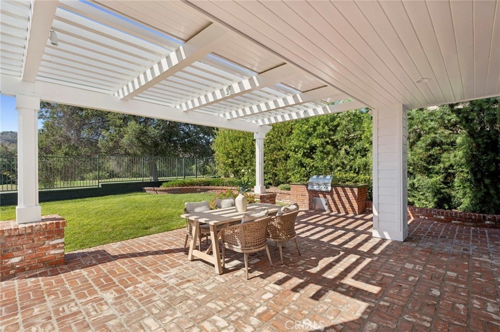 - Exterior FeaturesBarbecue, Lighting, Rain Gutters, Awning(s), Brick Driveway