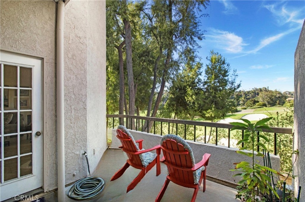 Welcome to Baja Finisterra on the Green—where privacy, convenience, and spectacular golf-course living come together. 2 Bedroom + Large loft (could easily be a third bedroom), PREMIUM LOCATION with this rare STREET LEVEL ENTRY residence, which offers easy access with NO STAIRS required to enter the home, and enjoys one of the most coveted positions in the community: an END UNIT directly ON THE 12TH HOLE with unobstructed, panoramic golf-course views framed by floor-to-ceiling living-room windows. Soaring vaulted ceilings and abundant natural light create an open, airy feel. The flexible layout features a primary suite, a secondary bedroom and bathroom, and a large loft that can be converted into a third bedroom. Enjoy a freshly painted interior, remodeled secondary bathroom, new commodes, plus laminate and tile flooring on the main level with carpeted stairs and a loft. The light and bright kitchen features quartz countertops, a stainless-steel farmhouse sink, a brand-new built-in wine cooler, designer lighting, and a convenient pass-through to the dining area. A sunny breakfast nook with an in-unit laundry closet accommodates full-size machines. Thoughtful flow makes entertaining easy, with an elevated dining area leading to the living room with a cozy fireplace and a quaint French door to the balcony, while multiple windows capture tranquil golf course vistas from nearly every room. Unwind and relax on the private deck, enjoying the songs of birds and the gentle ocean breeze. The primary suite off the living room has its own slider to the balcony and a vaulted ceiling. The ensuite bathroom boasts a dressing and vanity area, a large walk-in closet, and a walk-in shower. The association fees include water, trash, and a large enclosed spa with plenty of space for lounging in the sun. No mello roos and low tax rate. Street-level entrance, one-car garage with shelving, one assigned carport, and ample guest parking for ease and convenience. Lake Mission Viejo membership offers boat rentals, swimming beach, BBQ areas, playground, summer concerts, events, and more! Close proximity to shopping, dining, entertainment, and freeway access – this is a must-see!