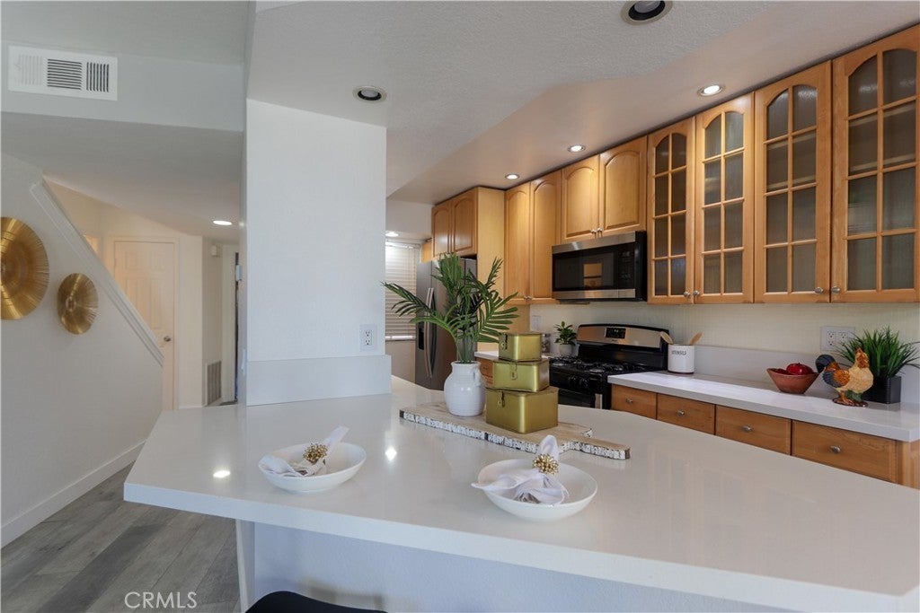Laguna Beach Lifestyle! Updated two-story townhouse! Two bedrooms upstairs each with its own en-suite bath, plus a 1/2 bath on the main floor. Vaulted ceilings and skylight. Spacious, desirable floor plan at Canyon Hills. The updated kitchen features an oversized counter with casual seating, plus a dedicated dining area that flows into a generously sized living room anchored by a warm fireplace. Two covered garages, one attached and one detached. Beautiful covered patio overlooking greenbelts & hillside views. Two resort-style swimming pools, spas, and nature trails. Come experience what makes this home and neighborhood special. Minutes to downtown Laguna Beach galleries, beaches, shopping, and renowned restaurants.