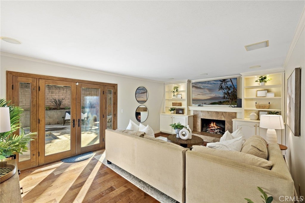 True gem, a single level pool home in Huntington Beach! Beautifully remodeled nestled in a quiet track in desirable Huntington Beach. Perfectly located near the fwy for easy accessibility and still beach close. With 4 bedrooms and 2.5 baths, the home offers comfortable modern living in a refined interior space. Step inside to hardwood flooring that flows seamlessly throughout the living areas. The living room features built-in cabinetry and creates a serene gathering space, flowing directly to the expansive designer kitchen. Equipped with high-end finishes, the kitchen is a standout focal point for both everyday living and entertaining. The home features dual pane windows, an inside laundry space and an attached two-car garage with additional driveway parking. The lot offers a private and inviting backyard: a sparkling in-ground pool, newly plastered, invites summer fun.