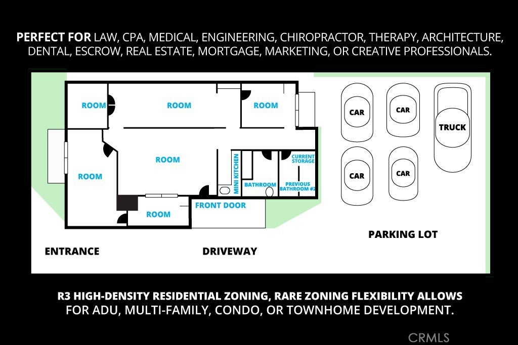 Attention Multi-Family Developers, Business Owners, and 1031 Exchange Buyers off the 5 Fwy - Red Hill Ave. Currently configured as a permitted professional office space and zoned R3 High-Density Residential, allowing exceptional flexibility. This versatile zoning supports a range of possibilities: build a spacious single-family residence with an ADU + garage, pursue a multi-family redevelopment, or create a custom live/work setup. Plumbing and utilities are already stubbed for two bathrooms and a full kitchen, saving significant time, hassle, and cost during any conversion or new build. Whether you're an owner-user, investor, or developer, this property delivers built-in value, redevelopment potential, and a strategic head start toward your next profitable project.