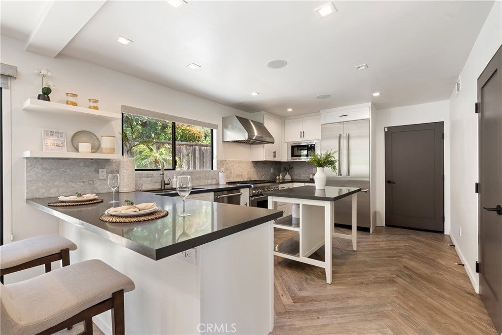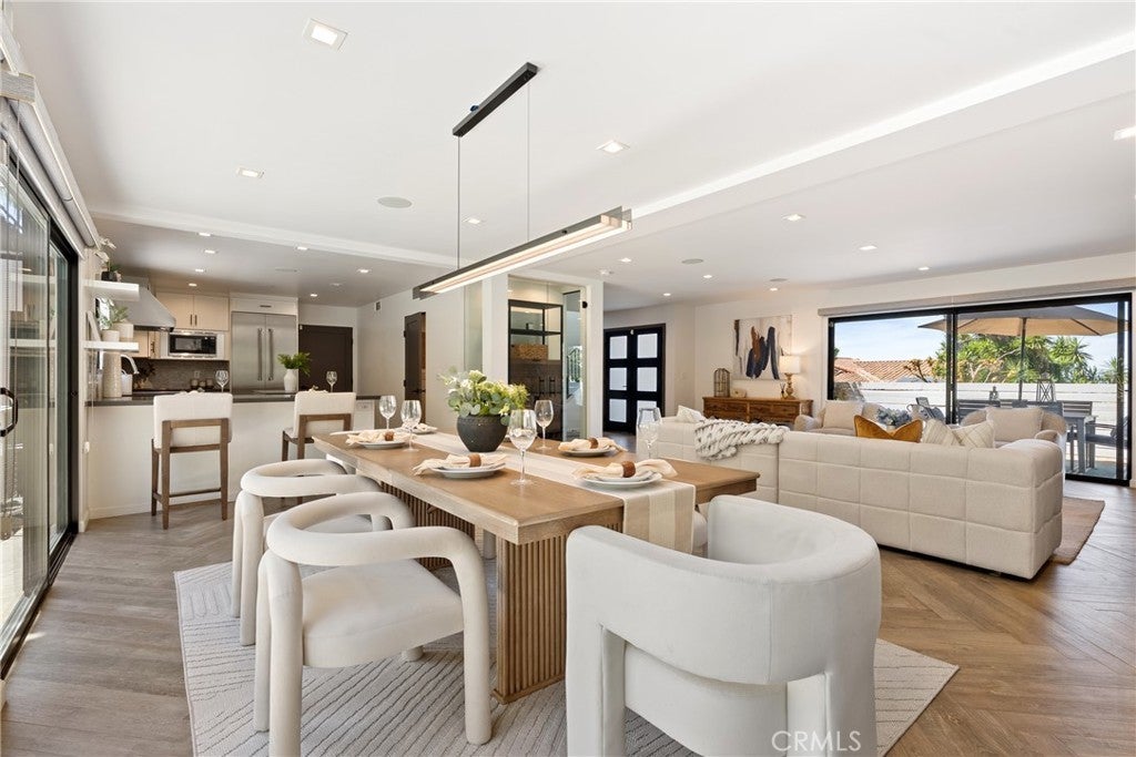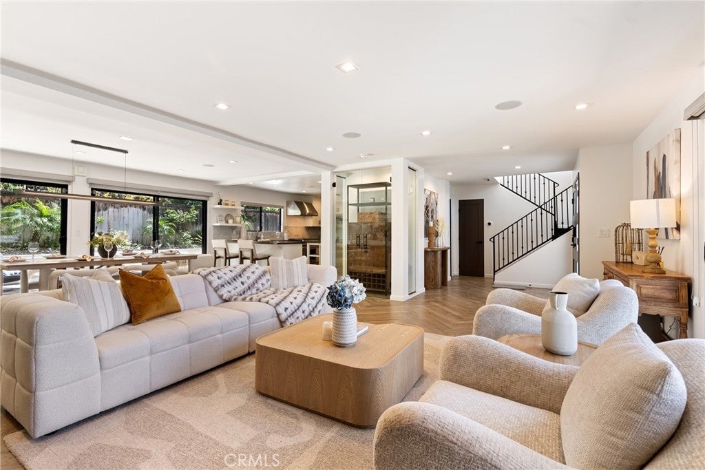 Welcome to 2870 Zell Drive, a beautifully appointed coastal retreat in Laguna Beach’s highly sought-after Top of the World neighborhood. Positioned to capture ocean, Catalina, and sunset views, this residence offers the perfect blend of relaxed comfort and timeless design. The main level showcases an open-concept layout anchored by chevron-patterned hardwood floors, a statement fireplace, and a striking floor-to-ceiling glass-enclosed wine display. The chef’s kitchen is thoughtfully designed with Thermador stainless steel appliances, a built-in refrigerator, walk-in pantry, and center island—seamlessly opening to the dining and living areas, as well as a spacious front patio ideal for indoor-outdoor entertaining. Upstairs, the primary suite features ocean and sunset views, a private balcony, and a spa-inspired bath complete with a freestanding soaking tub and designer finishes. Two additional bedrooms and a full bath complete the second level, along with an expansive ocean-view deck offering a built-in wet bar and generous lounge space—perfect for outdoor dining and enjoying coastal sunsets. Located just minutes from Laguna’s award-winning schools, scenic hiking trails, and world-class beaches, this home captures the essence of modern coastal living in one of the area’s most desirable communities.