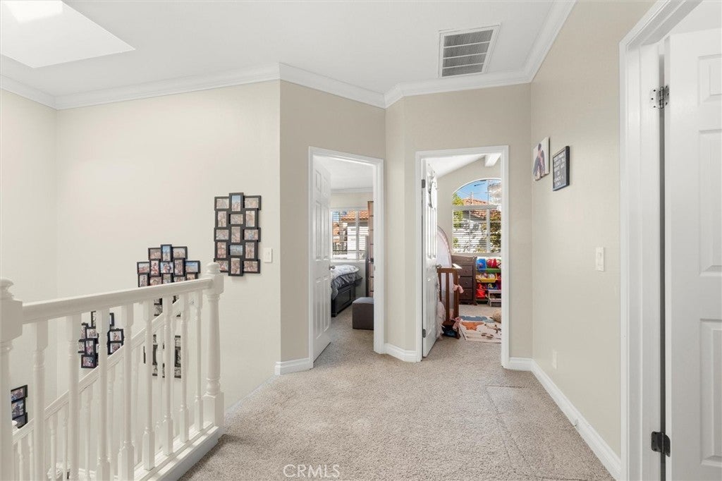 Welcome Home to 124 Via Lampara — beautifully refreshed, bright, and move-in ready! Nestled in the highly sought-after Candelero community of Rancho Santa Margarita, this inviting residence perfectly blends comfort, style, and convenience. With fresh interior paint and brand-new carpet upstairs, the home feels light, clean, and ready for you to move right in. Step through the front door into a soaring, open-concept living space filled with natural light, featuring high ceilings, a cozy fireplace, and elegant finishes that create a warm and welcoming atmosphere. The bright, spacious kitchen is the heart of the home — complete with white cabinetry, stainless steel appliances, quartz countertops, and a large window that floods the space with sunlight. The kitchen opens seamlessly to the dining area and backyard, making indoor-outdoor living effortless. Outside, you’ll find a fantastic entertainer’s backyard—beautifully designed with travertine pavers, mature trees, and plenty of room for gatherings, barbecues, or quiet relaxation under the California sun. This private space truly extends your living area and invites year-round enjoyment. Upstairs, the primary suite offers vaulted ceilings, a private balcony with serene hillside views, and a remodeled en-suite bath with dual vanities and a walk-in closet. Two additional bedrooms are filled with natural light and ideal for family, guests, or a home office. Residents of Candelero enjoy access to SAMLARC’s premier amenities, including multiple pools and spas, parks, playgrounds, tennis courts, and the picturesque Lake Rancho Santa Margarita Beach Club. Outdoor enthusiasts will love the nearby hiking and biking trails that lead all the way to Coto de Caza, as well as Tijeras Creek Golf Club right across the street. Located within the award-winning Capistrano Unified School District, and just minutes from shopping, dining, and the 241 Toll Road, this home offers the perfect balance of tranquility and convenience. Freshly updated, filled with light, and move-in ready — 124 Via Lampara is the perfect place to call home.
