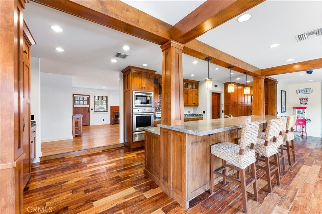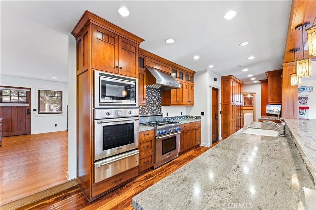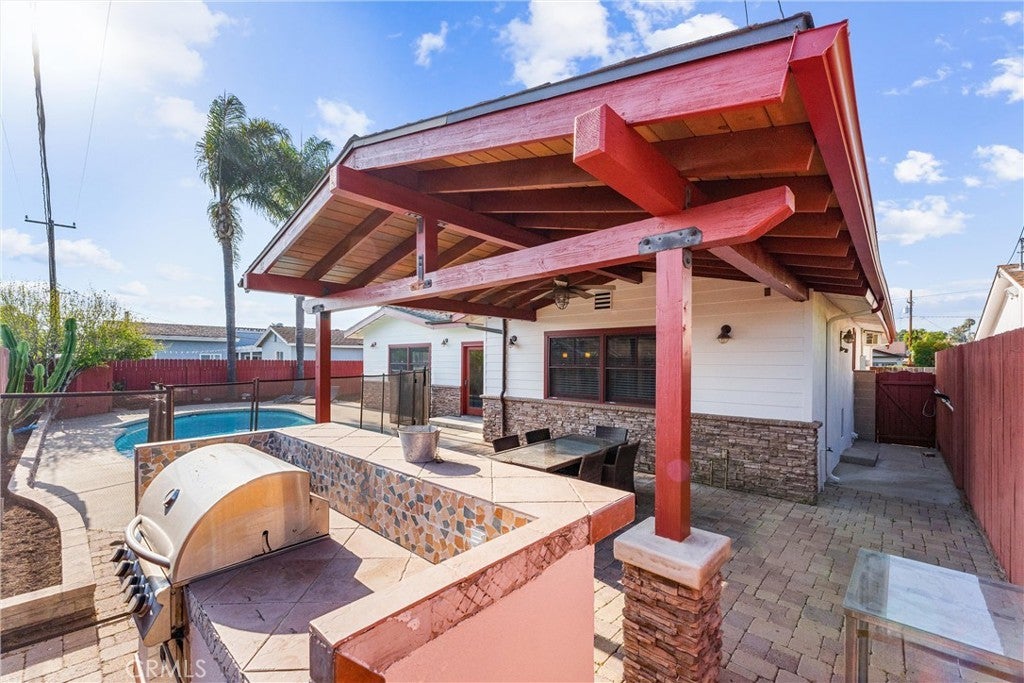 Beautiful Single-Story Pool Home in a Highly Desired Anaheim Neighborhood. This upgraded 2,008 sq. ft. home offers 3 bedrooms, 2.5 baths, and a flexible floor plan with enough room for an optional 4th bedroom. The modern kitchen includes custom craftsman-style cabinetry, granite countertops, a breakfast bar, recessed lighting, and stainless steel appliances, including a Thermador stove and built-in refrigerator/freezer. The kitchen opens to the dining area with a fireplace and a spacious family room. The private primary suite features an en-suite bath, while the additional bedrooms are well-sized with great natural light. The backyard features a fenced pool, a covered patio with a ceiling fan, and a built-in BBQ area—ideal for entertaining. Notable upgrades include new exterior paint, stacked-stone accents, a tankless water heater, a central attic fan, and a direct-access 2-car garage. Excellent location close to schools, parks, shopping, dining, and Anaheim attractions.