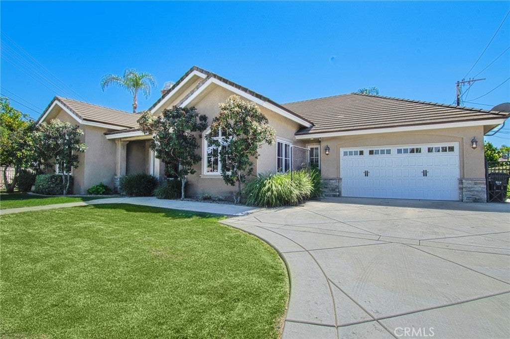 Welcome to this custom single-story home, offering approximately 3,276 square feet of living space on an expansive 14,683 square foot lot. Built in 2011, the home features four bedrooms and three bathrooms with a functional, open layout. A formal entryway leads to a living room and flows into an open kitchen and additional living space, ideal for everyday living and gatherings. The primary suite includes a soaking tub, while three additional bedrooms provide flexible use options. Wood flooring runs throughout the home, complemented by marble countertops in the kitchen and bathrooms. The kitchen is equipped with high-end appliances and includes a wet bar conveniently located off the formal dining room. The fully fenced and landscaped yard features a saltwater pool, offering outdoor space for relaxation and enjoyment.