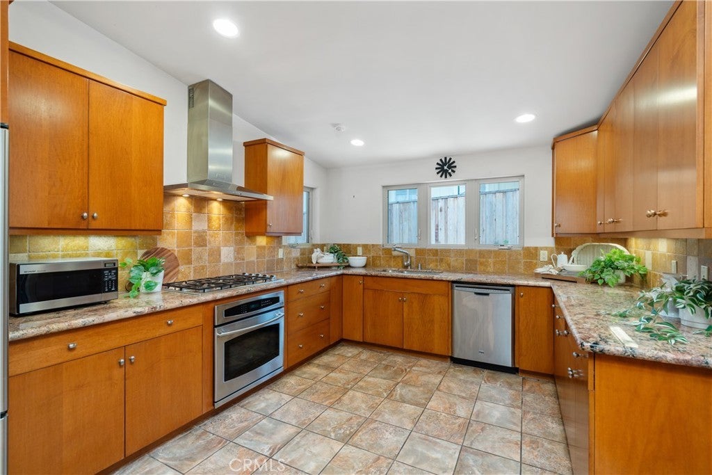 • AppliancesSixBurnerStove, Built-In Range, Dishwasher, Electric Oven, Disposal, Microwave, Range Hood, Vented Exhaust Fan