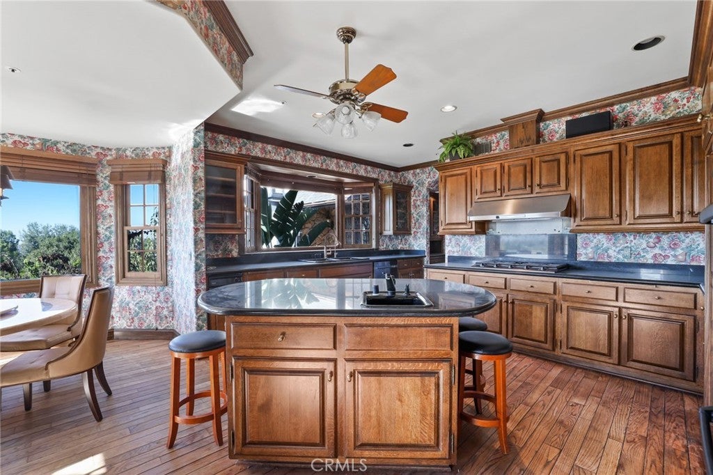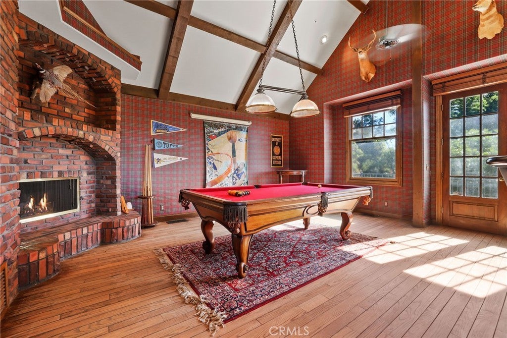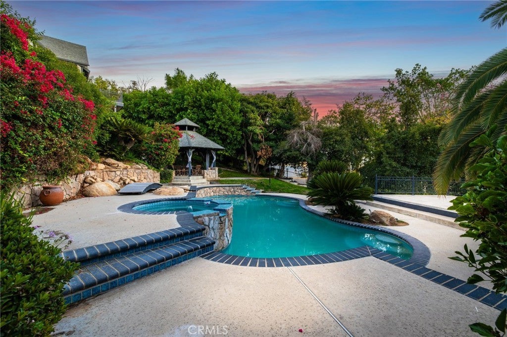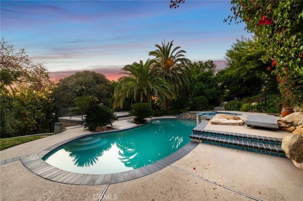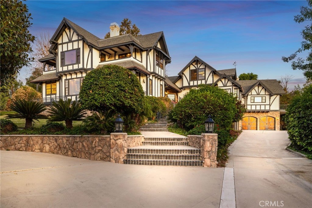 A one of a kind gated Tudor estate in the prestigious Hawarden Hills set amid tranquil grounds offering the perfect blend of sophistication, privacy and historic allure with contemporary potential. Your vision will complete the story. Crafted by renowned builder Tom LaCava as his personal residence, every inch of this home showcases remarkable craftsmanship and detail — from hand-selected fine oak banisters and custom-built cabinetry to dramatic wood and gas fireplaces and artful alcoves designed for displaying sculptures and fine art. Perched on a scenic hilltop, the residence is thoughtfully oriented to capture sweeping 180° views of city lights, mountains, and sunsets through large picture windows in nearly every room. A grand two-story foyer introduces the home’s elegant interiors, leading to a formal living and dining room with high ceilings, gorgeous oak hardwood floors, and private balconies. The chef’s kitchen features a breakfast nook, butler’s pantry, walk-in pantry, granite countertops, and a balcony ideal for al fresco dining. Designed for entertaining, the home offers a billiard room with bar and a family room with loft, both highlighted by vaulted beamed ceilings, fireplaces, and French doors. The estate is surrounded by walking paths, a sparkling pool and spa, cabana, and sun deck. Let every generation find its corner, there are 2 ADU's on the property, one is 2 Bed / 2 Baths 1,178 Sq Ft with its own 2-car garage and offers beautiful city light views. The other is a small studio suite pool house. A true legacy home with a timeless address.
