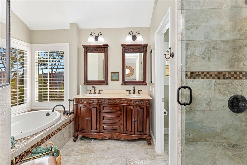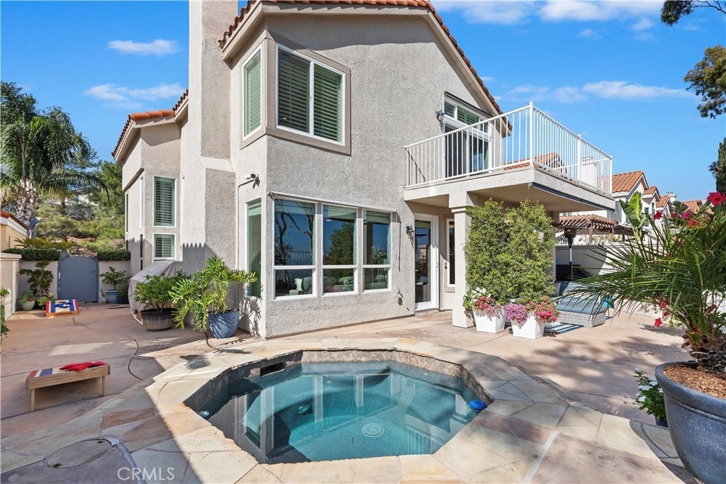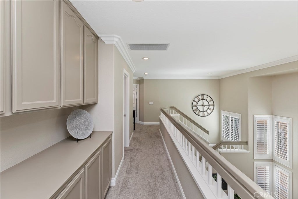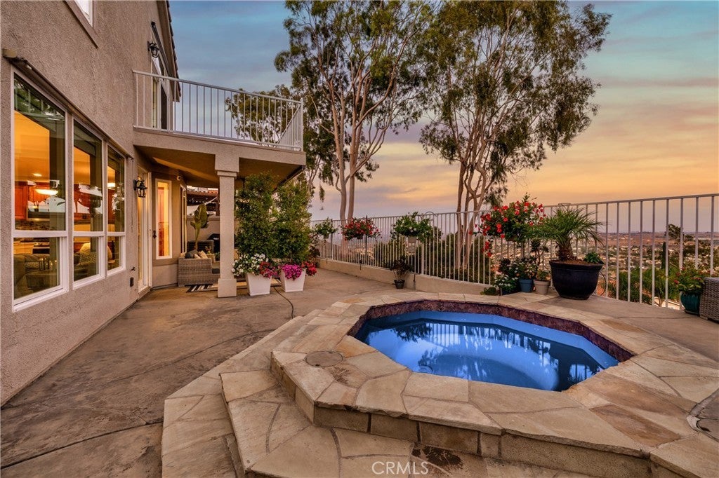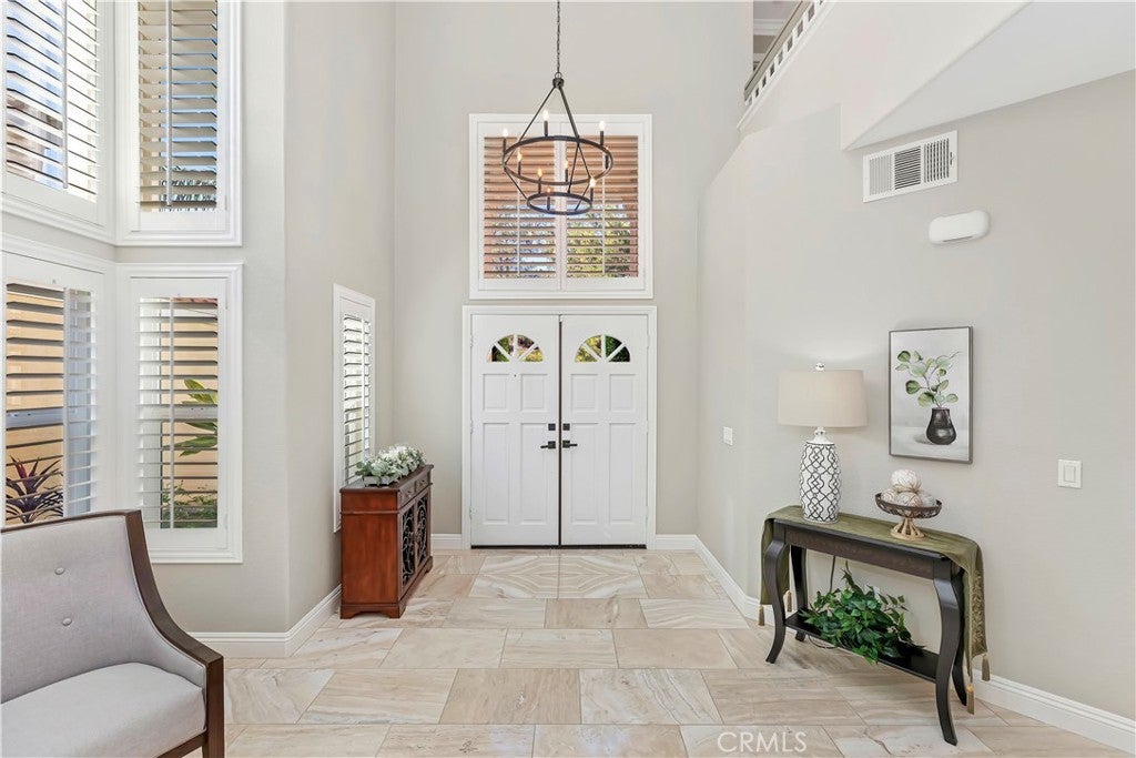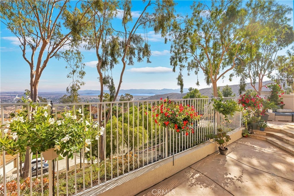 >>> This home is TRULY special and something you MUST see for yourself to believe. <<< This beautifully upgraded Lake Hills residence gives you the feel of a Pottery Barn showroom and showcases some of the best panoramic views of Lake Mathews that Lake Hills has to offer. With 4 bedrooms, 2.5 bathrooms, and 2,089 SqFt of refined living space, this home blends comfort and sophistication in every detail. Step inside to a dramatic entry where sky-high ceilings, crown moulding, and wide-plank baseboards frame textured travertine flooring and soft modern grey walls bathed in natural light. The kitchen is a true showpiece, featuring stainless steel LG Suite appliances, granite countertops, soft-close cabinetry, and a stylish backsplash all opening to the family room anchored by a stacked-stone fireplace and expansive lake views that will WOW! even the most discerning critics. Upstairs, the primary suite offers a peaceful retreat with its own breathtaking view of the lake -- imagine waking up to that every morning!! -- a walk-in shower, and a jacuzzi tub perfectly positioned against the window to “soaking those views”. Additional highlights include new carpet with upgraded padding, plantation shutters, Milgard double-pane windows, a QuietCool whole house fan, recessed lighting throughout, and a roof tune-up that was conducted in 2023. The backyard invites relaxation with an in-ground jacuzzi accented by color LED lighting, while stucco privacy walls ensure a serene outdoor escape. This Lake Hills home captures the perfect balance of elegance, comfort, and California living—with views you’ll never tire of. Nestled on 750 acres, Lake Hills provides a serene mountaintop retreat near Riverside’s cultural and educational offerings as well as shopping. Residents enjoy the vast open spaces, top-tier Lake Hills Elementary, parks, playgrounds, picnic areas, and a basketball half-court. The HOA also includes maintenance of the extensive common grounds as well as an evening security patrol. Perfect for commuters, with easy access to the 91 Freeway and Metrolink.
