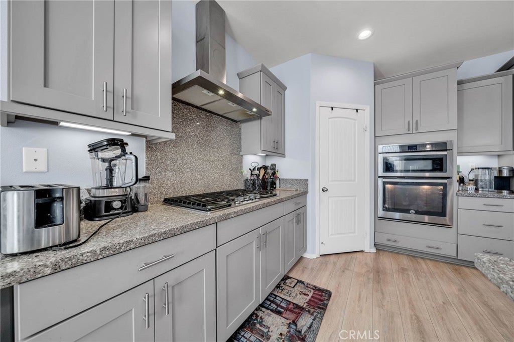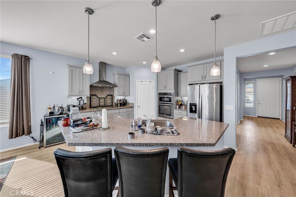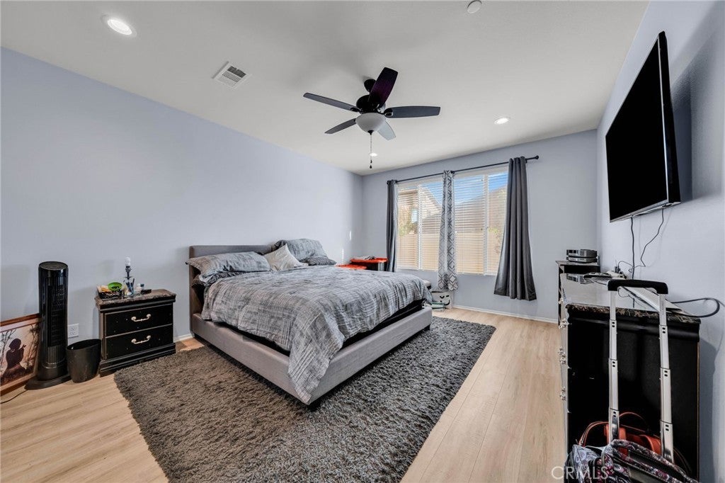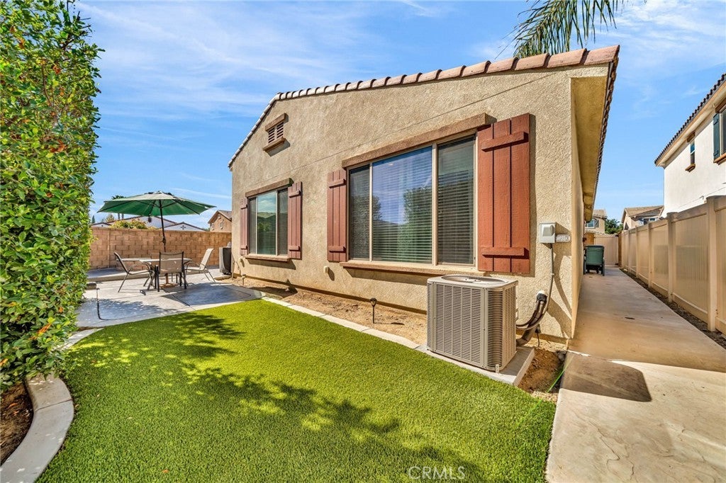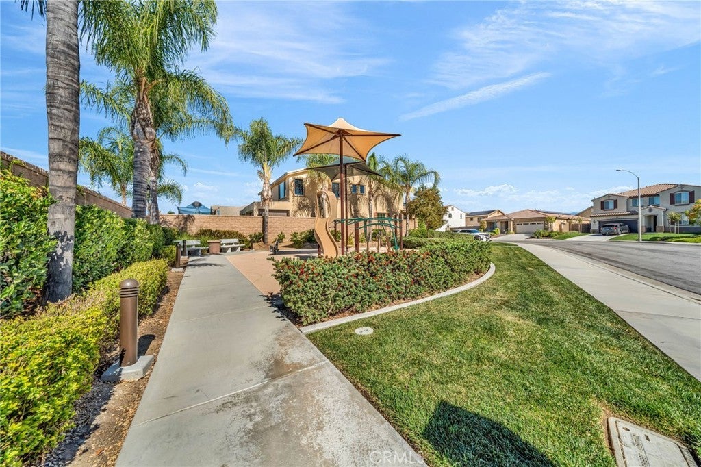 Discover the charm of this beautiful corner lot home located in the prestigious Reflections Gated Community. This exquisite 3-bedroom, 1.75-bath residence spans 1,952 square feet of thoughtfully designed living space, seamlessly blending comfort, functionality, and style. As you enter, you will be welcomed by an open-concept floor plan that exudes brightness and spaciousness, featuring generously sized bedrooms and a dedicated den/office area. The heart of this home is undoubtedly the gourmet kitchen, adorned with granite countertops, a large center island, and an abundance of cabinet space. It is equipped with a large gas cooktop, an oversized hood, a microwave/oven combo, and stainless-steel appliances, making it a chef’s dream. Retreat to the expansive primary suite, which includes a walk-in closet, dual vanities, and a luxurious walk-in shower. The private backyard offers a functional fire pit, perfect for gatherings. Situated in a prime location, this home is ideal for outdoor enthusiasts, with scenic trails for walking, biking, and hiking just moments away. Enjoy convenient access to the community pool, complete with a splash pad and water slide, as well as a community center, lake, parks, and highly-rated schools. With close proximity to restaurants, shopping options like CVS and Stater Bros market, and major freeways, this property presents an unparalleled opportunity to reside in a truly exceptional neighborhood. Additionally, the home features a solar electric system, providing significant energy savings and year-round efficiency—an incredible value and long-term benefit for its next homeowner. Seize this opportunity; it is not to be missed!