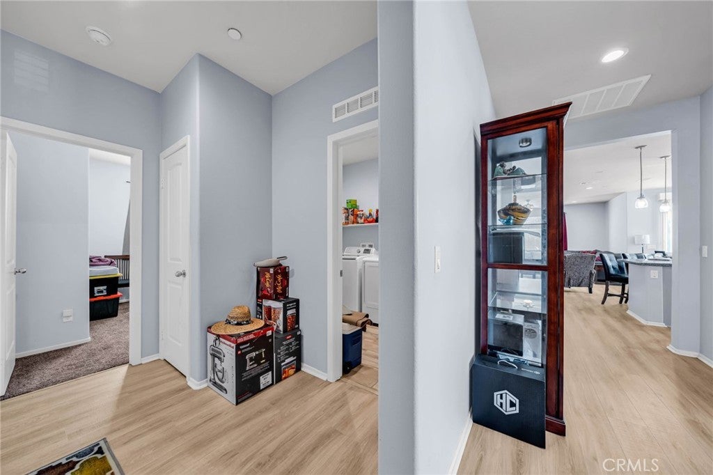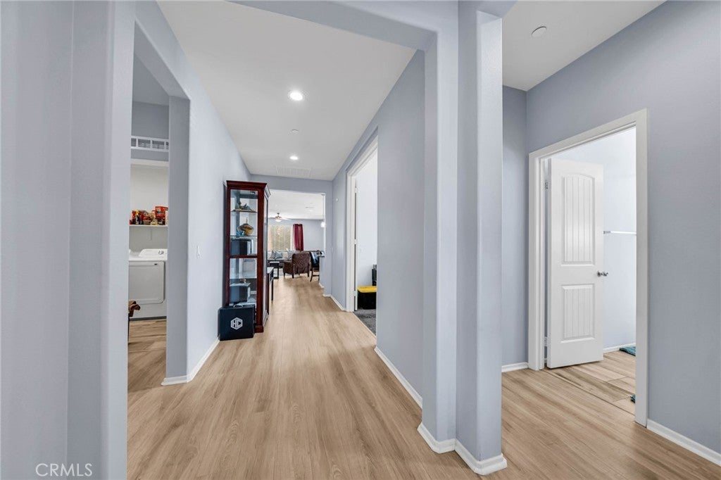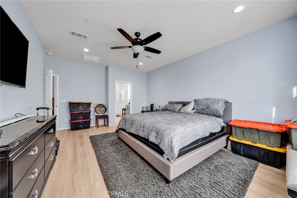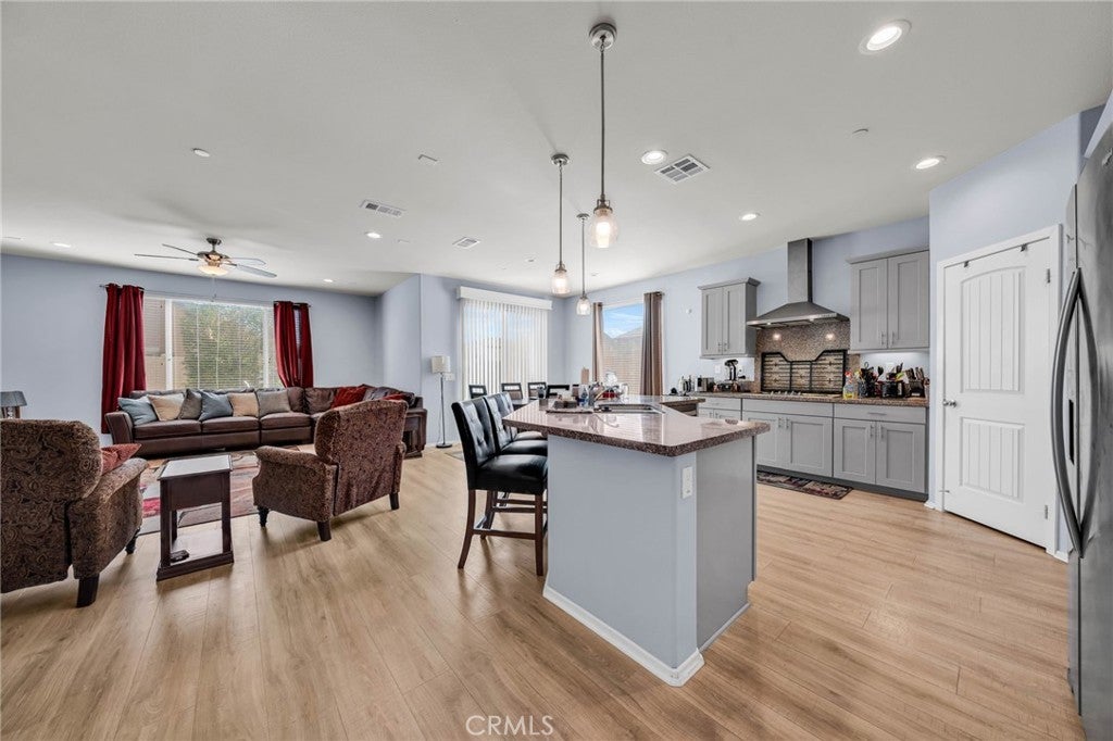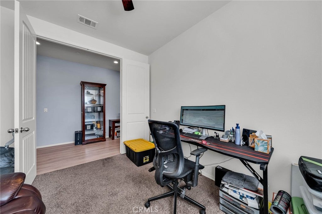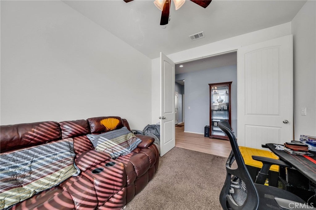 Discover the charm of this beautiful corner lot home located in the prestigious Reflections Gated Community. This exquisite 3-bedroom, 1.75-bath residence spans 1,952 square feet of thoughtfully designed living space, seamlessly blending comfort, functionality, and style. As you enter, you will be welcomed by an open-concept floor plan that exudes brightness and spaciousness, featuring generously sized bedrooms and a dedicated den/office area. The heart of this home is undoubtedly the gourmet kitchen, adorned with granite countertops, a large center island, and an abundance of cabinet space. It is equipped with a large gas cooktop, an oversized hood, a microwave/oven combo, and stainless-steel appliances, making it a chef’s dream. Retreat to the expansive primary suite, which includes a walk-in closet, dual vanities, and a luxurious walk-in shower. The private backyard offers a functional fire pit, perfect for gatherings. Situated in a prime location, this home is ideal for outdoor enthusiasts, with scenic trails for walking, biking, and hiking just moments away. Enjoy convenient access to the community pool, complete with a splash pad and water slide, as well as a community center, lake, parks, and highly-rated schools. With close proximity to restaurants, shopping options like CVS and Stater Bros market, and major freeways, this property presents an unparalleled opportunity to reside in a truly exceptional neighborhood. Additionally, the home features a solar electric system, providing significant energy savings and year-round efficiency—an incredible value and long-term benefit for its next homeowner. Seize this opportunity; it is not to be missed!