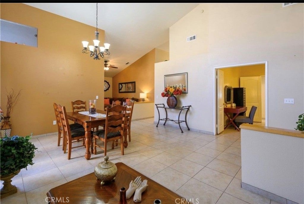 welcome home to this one story spanish style casita located in a very desirable area of san jacinto. this pride of ownership home boast 4 bedroom and 2 bath . as you walk up you will see a covered patio for those summer nights sitting in front of your home watching the sun go down. as you enter the double doors you will be greeted with a very spacious living and dining area . the high ceilings makes it look like a grand entrance . home also has added high windows for much natural light. the kitchen comes with plenty of cabinet space , gas range stove , built in microwave and dishwasher. family room is adjacent to the kitchen with a cozy fireplace for those friday night movie nights . the master bedroom sliding glass door and end suite with large bath with soaking tub and separate walk in shower. the common bathroom with title flooring and upgraded vanity. laundry room is inside with plenty of storage. beautiful back yard with fruit trees and beautiful landscape . the back yard also comes with covered patio for those games nights . home also has a large driveway for the 3 car garage.