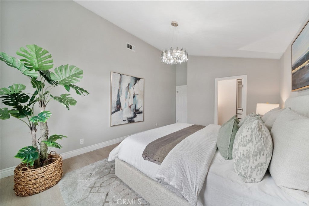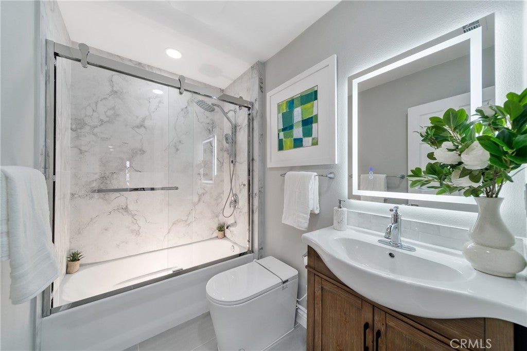 *Single-level, single-loaded street — beautifully remodeled home~Located on a serene single-loaded street with no front-facing neighbors, this beautifully remodeled single-level home blends modern elegance, warmth, and convenience. Offering approximately 2,008 sq. ft. of living space on a 6,500 sq. ft. lot, the residence features four spacious bedrooms, three stylish full bathrooms, and a convenient powder room—all thoughtfully designed for comfort and functionality. The open-concept living and dining area welcomes you with vaulted ceilings, abundant natural light, and luxury vinyl plank flooring throughout. The freshly painted interior creates a clean and inviting atmosphere. The spacious, chef-inspired kitchen showcases sleek quartz countertops, brand-new stainless steel appliances, and contemporary flat-panel European-style cabinetry in a warm light-oak tone, accented by matte brown hardware for a sophisticated finish. Each bedroom enjoys high ceilings for an enhanced sense of space and comfort. All bathrooms have been completely renovated with spa-like designs, featuring frameless glass showers with large-format marble-look porcelain tiles, rainfall shower heads, and elegant vanities with LED backlit mirrors that provide a soft, modern glow. Additional upgrades include partial electrical and plumbing improvements (including the garage), new light fixtures throughout, a brand-new water heater, and an epoxy-coated garage floor. Outside, the 6,500 sq. ft. lot offers spacious front, side, and rear yards—freshly landscaped with new real grass, trees, and a tranquil fountain. The backyard has been newly paved and includes a built-in BBQ, providing the perfect setting for outdoor living and entertaining. Positioned within a desirable Saddleback Valley Unified School District and close to shopping, dining, and recreation, this home also features public sewer and water, no HOA fees, no Mello-Roos taxes, and a large gated side yard ideal for RV, boat, or extra parking. Don’t miss the opportunity to make this move-in-ready home yours!