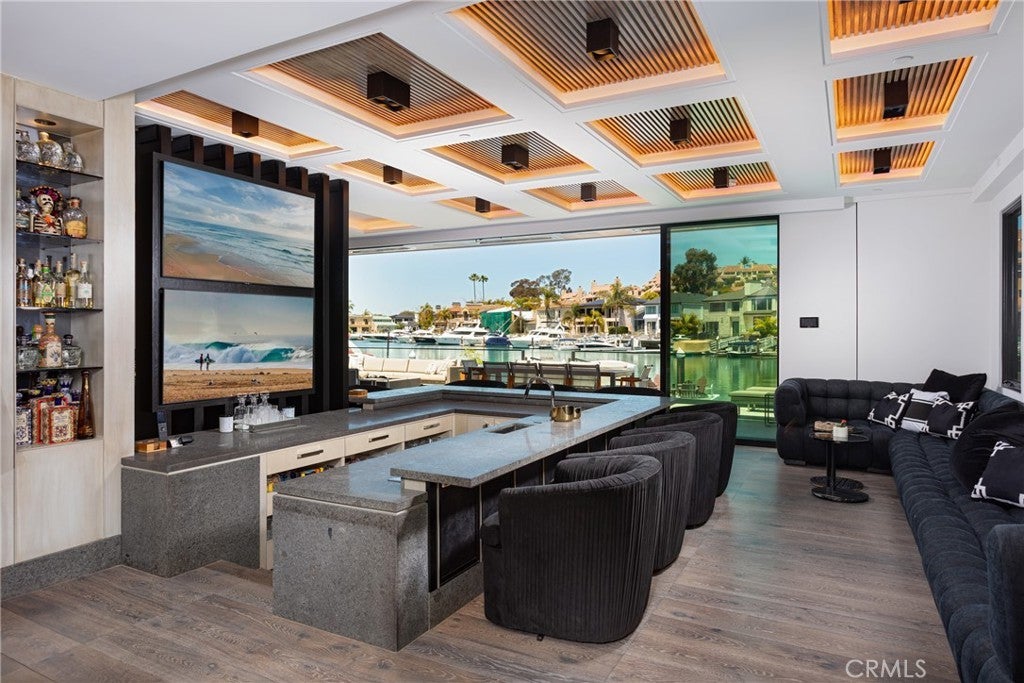Welcome to one of Newport Beach’s most exceptional waterfront estates — a showpiece of modern coastal design and world-class craftsmanship. Perfectly positioned on prestigious Harbor Island Drive, this architect-driven residence blends sleek contemporary living with resort-style amenities and jaw-dropping panoramic bay views. Walls of La Cantina glass disappear for a true indoor/outdoor experience, opening to an expansive entertainer’s deck complete with Wolf BBQ, Green Egg smoker, beer tap, fire pit, and private 45-foot dock that can accommodate a 55-foot boat. Every inch of this home was built to impress — from the custom lighting and coffered ceilings with wood inlays to the 7” European oak floors and designer finishes throughout. The chef’s kitchen is next-level: La Cornue Flamberge Rotisserie, Wolf 60” dual-fuel range, Sub-Zero refrigeration, Miele dishwasher, Gessi fixtures, and marble prep island. Entertain with style at the step-down bar with custom leather details and Sub-Zero ice maker, or host dinner under statement lighting beside a temperature-controlled wine wall. Upstairs, the primary suite rivals any five-star resort with a vaulted ceiling, fireplace, private balcony, dressing room, steam shower, soaking tub, and Neorest automated toilets. All additional bedrooms are ensuite, offering ultimate comfort and privacy with an additional primary suite on the opposite side of the home. Smart-home automation powered by Crestron controls every element — lighting, climate, music, and security. With panoramic views of Promontory Bay and just minutes from Newport’s best dining and shopping, this is more than a home — it’s a lifestyle statement.