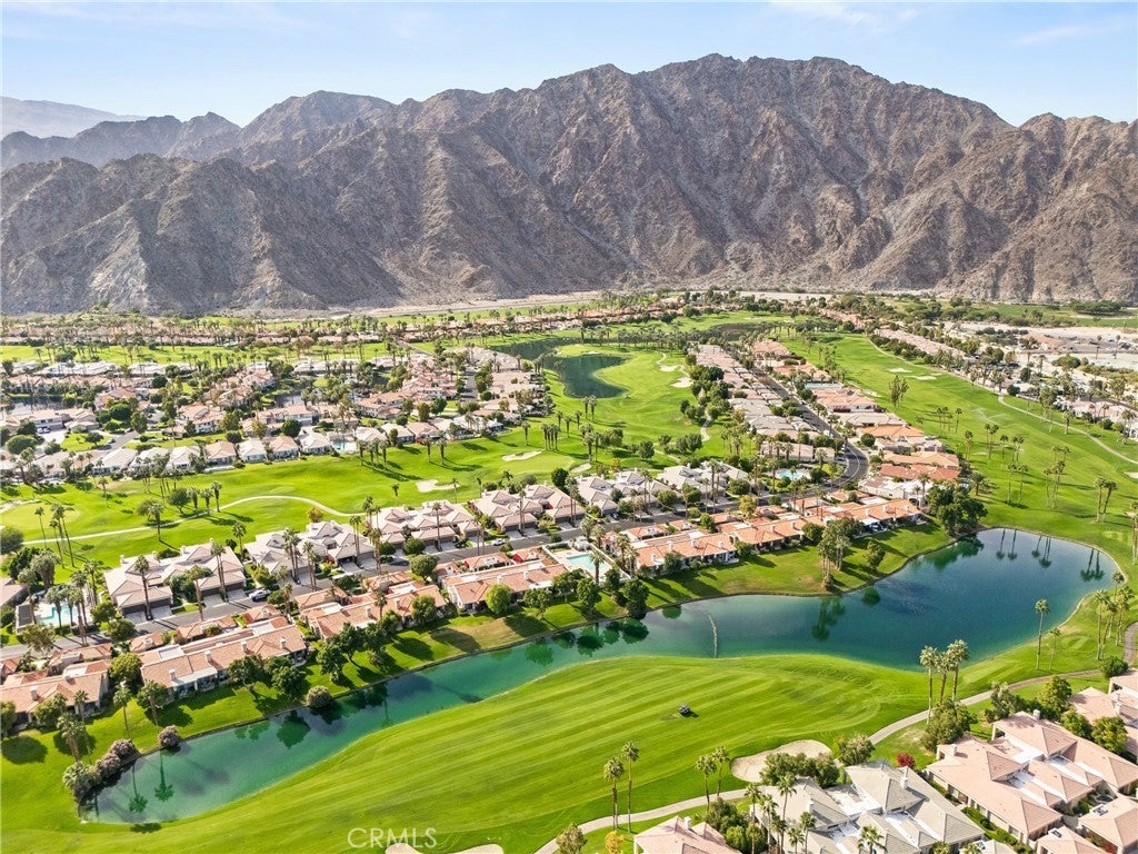 Best value in the PGA Palmer Private Residences. The condo resides on the prestigious Arnold Palmer golf course overlooking the 4th fairway and Santa Rosa Mountains. Single level 2-bedroom 2 bath home has an abundance of potential and is sold furnished and as is in its original condition. The location of the unit has breath taking views of the fairway, a serene pond, and shade provided by large trees and with mountains and palm trees in the background. The home has an impressive courtyard entry way and large windows showcasing the golf course. The carpet is new, and the furniture and golf cart are included. The home is a short walk from one of many community pools and the community has 24 hour gated security. The HOA fee includes exterior paint, roof, landscape, gardening, basic cable, pest control, community pools, trash pickup and 24-hour guard gated security. Make this your permanent or second home and enjoy having pride of ownership in PGA West on the golf course with a prime location and stunning golf course and mountain views.