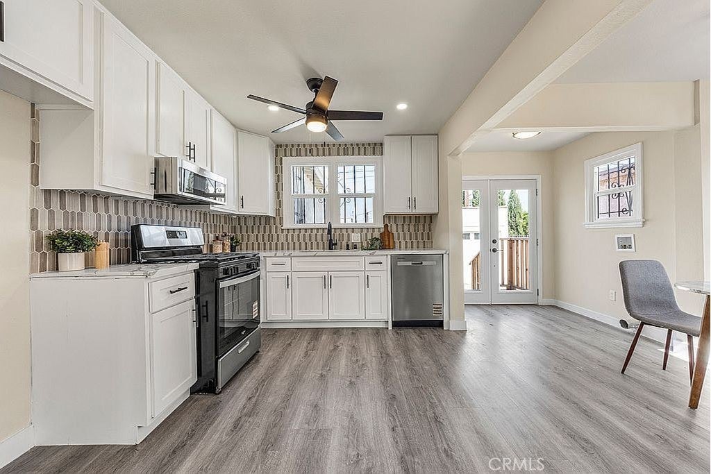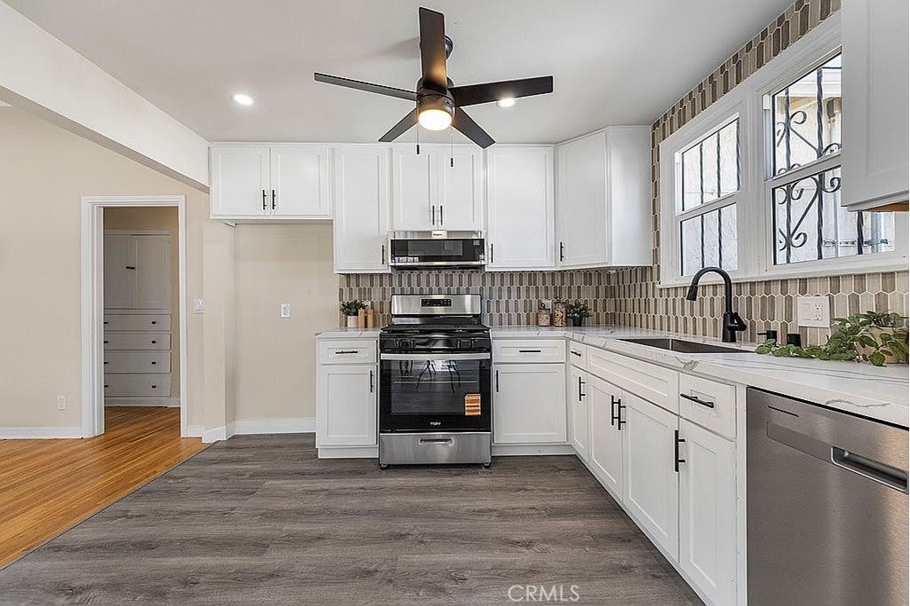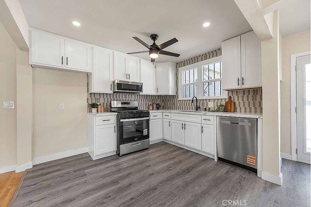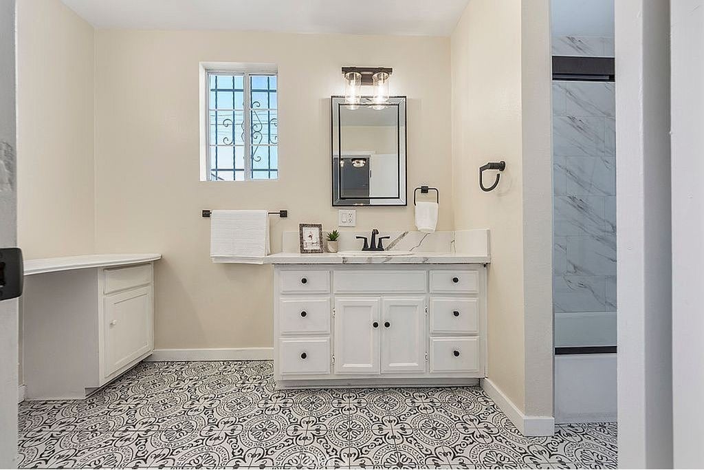 Classic Spanish style home with Smart Updates and Timeless Charm. This 2-bedroom, 2-bath Spanish single family home blends original charm with thoughtful upgrades that make daily living easy. You won't find a better home living alternative than this 2 bedrooms and 2 bathroom centrally located in the Los Angeles neighborhood hub of Westmont square a true pride of ownership community! The functional floor plan is ideal for the 1st time home Buyer in need of a move in ready property. The living and dining area present the perfect family setting with several windows offering tons of natural light, arched ceiling, newly restored original hardwood flooring throughout. The bathroom was tastefully remodeled with modern tile design, custom shower with a glass door, and matte black fixtures. And let's not forget the heart of the home, the modern fully equipped kitchen designed for all who love to cook and entertain with ease. Neighboring the kitchen there's a small breakfast or nightcap nook to enjoy coffee, tea, spirits & quick bites. Additional improvements & amenities include a new french doors leading to a patio deck, freshly painted exterior & interior, private backyard with a long driveway that will accommodate parking for at least 3 cars. also offers brand new sprinkler system and landscape. The lot size with its designated R1 zoning provide the opportunity to build out an ADU for future value add appreciation while creating cash flow. Commuters enjoy close proximity to all freeways, public transportation, shopping centers, schools, Destination Crenshaw, the SoFi and Intuit Dome Entertainment hub, including LAX. Do not miss out, book your tour today, take advantage of the recent mortgage rate improvements and the many bank communities driven lending programs for 1st time home buyers that offer grant funds!