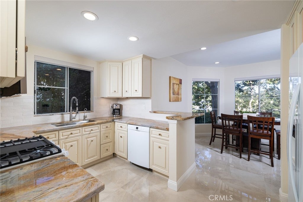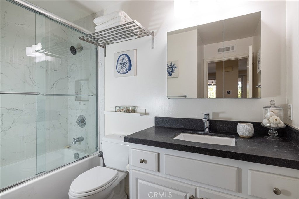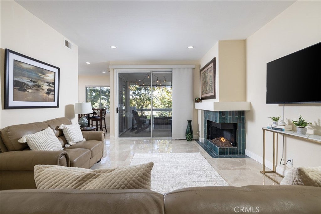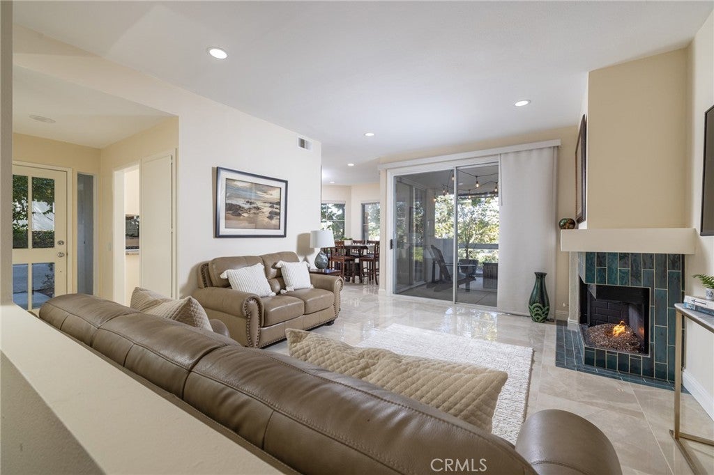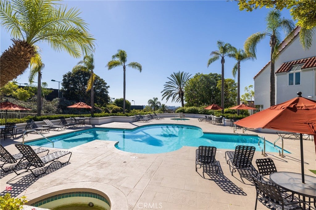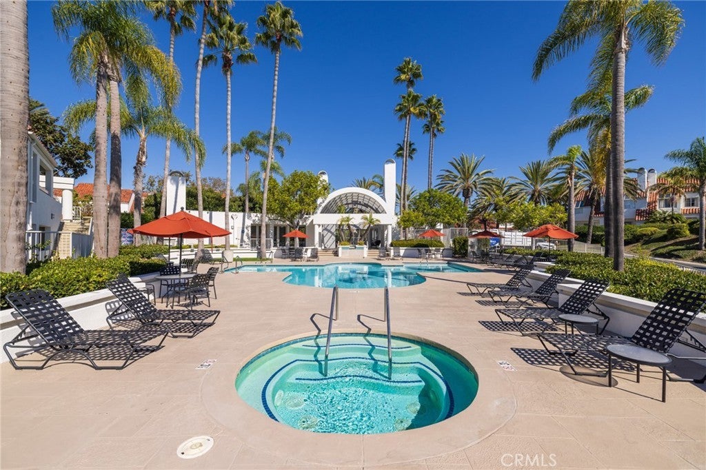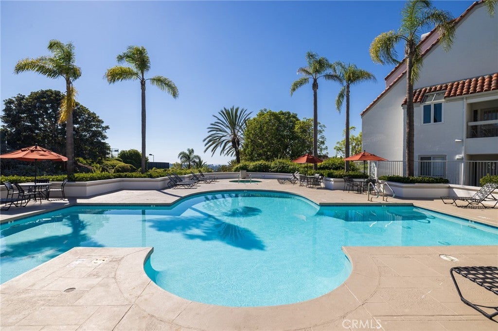This reimagined property is perfect for the most discerning resident. When first entering this gorgeous home, you will see the new 25-inch tile flooring, which will remind you of Roman luxury living on the Via Veneto. A redesigned fireplace with jaguar green rectangular tile adds an elegant pop of color. The kitchen, with its Blue-Louise Brazilian granite countertop, it's Bedrosian tile creamy-white backsplash, new farmhouse stainless steel sink, and all new solid wood, designer cabinetry will entice your imagination in the culinary arts. The newly painted walls in soft tones create the well-deserved relaxing environment after a day of work or fun. New lighting, a private patio with market lighting, a granite gas firepit feature and Adirondak furniture tops off this fully furnished, all you could want, condo property. Did I mention there is a full-size two car garage with ample storage to make your move as comfortable and convenient as possible? A swimming pool and jacuzzi with an ocean view overlooking the beautiful blue Pacific? And lest we forget, it is only minutes away from shopping and only minutes to the beach. Welcome to 1 La Paloma, a property you'll not want to miss!