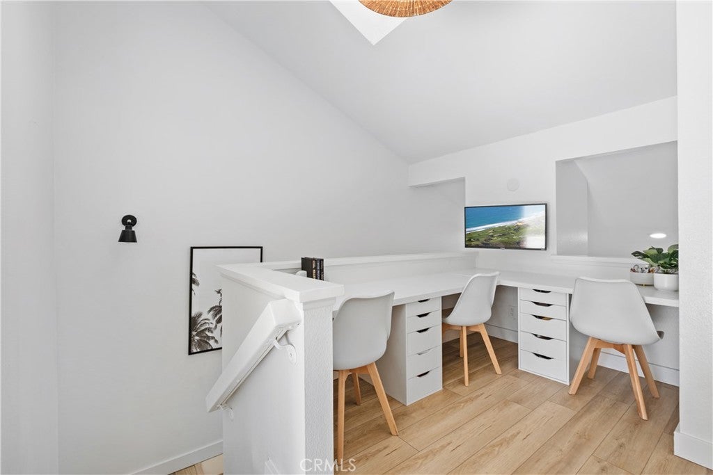 Highly Sought-After Casitas Del Rio Townhome – Ocean Close! Welcome to this beautiful end-unit, two-story townhome in the desirable Casitas Del Rio community. Surrounded by lush greenbelt views and filled with abundant natural light this home offers the perfect blend of comfort, style, and convenience. Step inside to an open and upgraded kitchen featuring shaker cabinets, quartz countertops, and stainless steel appliances. The luxury vinyl flooring flows throughout the home, complementing the high ceilings and cozy upgraded living room fireplace. Upstairs, the spacious primary suite impresses with vaulted ceilings, a private view balcony, and a walk-in closet. The loft area includes a built-in work desk, ideal for a home office or study space. Additional highlights include a newer forced air system, recessed lighting, upgraded bathrooms, and an oversized two-car garage with direct access. Enjoy resort-style living with a lovely community pool and spa, and take advantage of the nearby San Juan Creek walking and biking trail. All this, just less than 1.5 miles to Doheny State Beach and less than a mile to historic downtown San Juan Capistrano with newly built River Street gathering complex with shopping, fine and casual dining, open park setting for kids to play and live music! Check out the new Skate Park close by, but not too close! This location also offers strong affordability for coastal living with no Mello-Roos, low HOA dues, and unbeatable convenience — walking distance to elementary and middle schools, the local library, community centers, parks, the Boys & Girls Club, and the fabulous San Juan Ecology Center, which features organic produce, community events, and family-friendly activities. The community features an RV/Boat parking lot at an extra cost. Need more patio space? There is potential of adding a larger enclosed patio space with HOA approval. Whether you’re looking for a fantastic starter home or a smart investment opportunity, this property is a must-see! Community landscape improvements are in the design phase, with implementation hoped for this year.