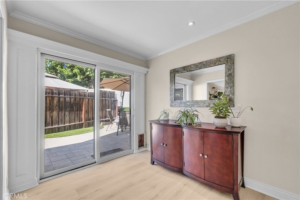 Discover the perfect blend of sophistication and style in this beautifully upgraded 3-bedroom, 2-bathroom condo, offering 1,220 sq. ft. of open-concept living in one of Mission Viejo’s most desirable neighborhoods. Step inside to an inviting open floor plan that seamlessly connects the living, dining, and kitchen areas—perfect for entertaining and everyday living. The spacious chef’s kitchen boasts a stunning oversized island, ideal for gatherings and culinary creativity. Enjoy the warmth of brand-new laminate flooring throughout and the fresh, modern appeal of new interior paint that enhances every room. Comfort is assured year-round with a new HVAC system ensuring efficiency and peace of mind. The primary suite offers a private retreat, complemented by two additional bedrooms perfect for guests, family, or a home office. Step outside to your private backyard oasis, newly finished with elegant hardscape pavers and low-maintenance synthetic grass, ideal for outdoor dining or peaceful relaxation. Additional highlights include a two-car garage with direct access, a quiet cul-de-sac location for added privacy, and easy access to the freeway, award-winning schools, shopping, and dining. Experience modern elegance, comfort, and convenience—all in the heart of Mission Viejo.