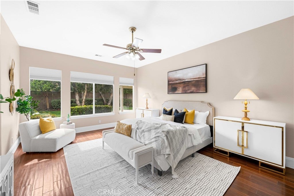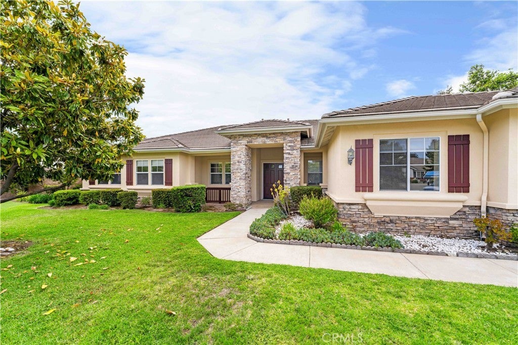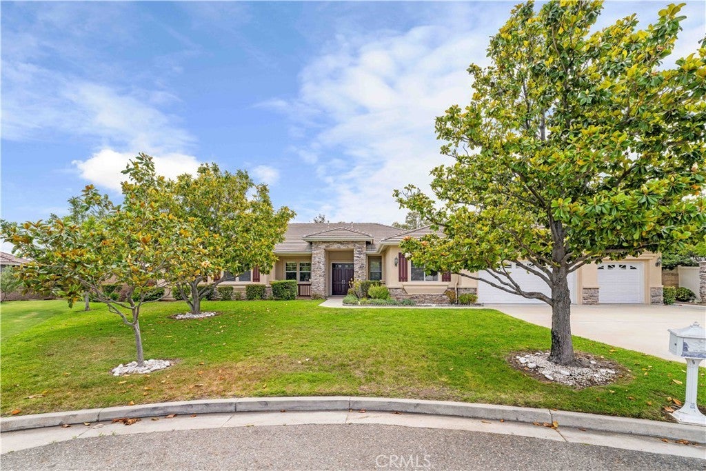 Welcome to this stunning rare single-story estate, ideally nestled on an expansive lot in a quiet cul-de-sac with ultimate privacy and charm! Boasting 5 spacious bedrooms, 3 bathrooms, an oversized 3-car garage, and a large extended driveway, this home offers comfort, elegance, and room to grow. As you enter through the double-door entry, you’re greeted by a flowing open floor plan which opens up to the large living room with elegant crown molding, high ceilings, recessed lighting and plenty of natural light. The family room is open to the kitchen, including a cozy fireplace — perfect for entertaining or relaxing evenings at home. The gourmet kitchen features beautiful granite countertops and backsplash, a large center island with seating, and abundant cabinetry — a dream setup for home chefs and family gatherings. Gleaming hardwood floors run through most of the home, and large windows throughout bring in warm sunlight and serene views. Retreat to the primary suite, a peaceful haven overlooking the backyard. The ensuite spa-style bathroom features dual vanities, a soaking tub, walk-in shower, and a large walk-in closet. Step outside to your private oasis: a beautifully landscaped 27,029 sqft lot with fruit trees, a covered patio, and a built-in BBQ island with sink — ideal for entertaining or enjoying a quiet morning coffee. There's ample space to add a pool, ADU, or create your dream backyard. Additional feature includes an indoor laundry space with utility sink. Prime location near top-rated schools, Victoria Gardens shopping center, dining, parks, and convenient access to 210, 15, and 10 freeways. Don’t miss out on this rare gem—schedule a tour today! (Staging has been removed; the photos with staging were taken beforehand.)