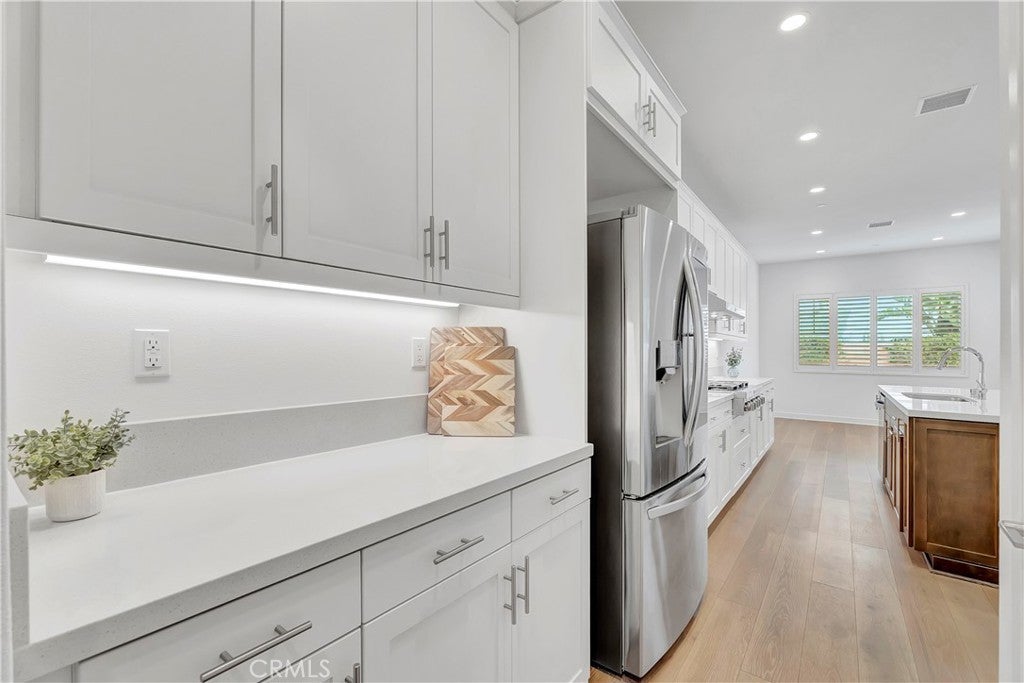 Welcome to 14432 Windfall, located in the prestigious Windbourne community by TriPointe Homes! Completed in August 2020, this rare single-story nearly 2300 square foot home offers a modern open floor plan and sits on one of the larger interior lots in the neighborhood. Featuring 10-foot ceilings throughout, this 3 bedroom and 2.5 bathroom home also has the potential to convert to a 4-bedroom layout. Elegant upgrades throughout include waterproof wood look flooring, designer paint, custom window coverings, recessed lighting with dimmers, a 3-zone HVAC system, tankless water heater, and built-in fire sprinklers for added peace of mind. The gourmet kitchen is a true showpiece—an abundance of cabinetry, a walk-in pantry, stainless steel appliances, quartz countertops, a 36” 6 burner cooktop, and an oversized center island. The luxurious primary suite includes a spacious walk-in closet and a spa-inspired bathroom with dual sinks, a large glass shower with bench, and a soaking tub. A two-car garage completes this exceptional property. Ideally located near the 405 and 22 freeways, shopping, dining, and the new community park—this home offers the ultimate in coastal living. Don’t miss your chance to own this stunning, move-in-ready home—schedule your private showing today! *Photos with furniture have been virtually staged.