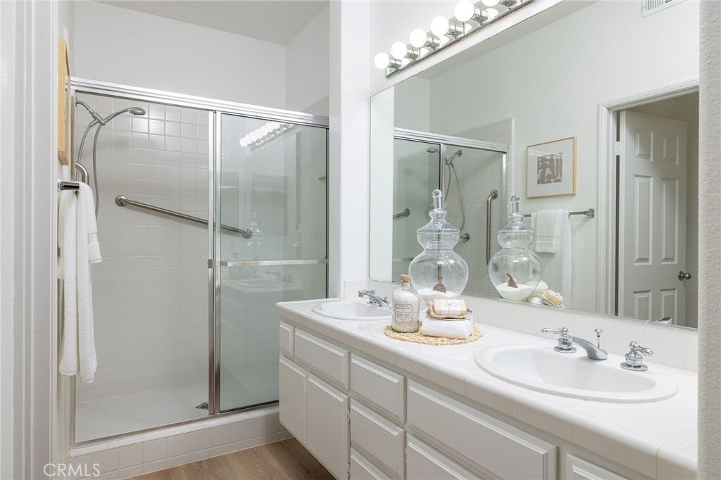 Located in the desirable Breakers community of Laguna Niguel, this townhome-style residence features dual primary suites, abundant natural light, resort-style amenities, and an unbeatable location with easy access to Bear Brand Park, Ocean Ranch Village, Salt Creek Beach, and Dana Point Harbor. Tucked away in a secluded, end-unit setting at the edge of the Bear Brand complex, with an open greenbelt at your front door, this property is a perfect blend of peace and tranquility. Inside, discover a bright and airy interior with dramatic vaulted ceilings, large windows, and an ideal floor plan. The spacious living area includes a gas fireplace and a versatile bedroom suite on the main level that can easily double as an office. With quality stainless appliances and a breakfast bar, the kitchen and neighboring dining area are ideal for easy entertaining and everyday living. As added bonuses, you will find an adjacent laundry room with included washer and dryer and direct access to the attached two-car garage with ample storage. Upstairs, two bedrooms function as dual primary suites - the first with an expanded walk-in closet and en suite bath, and the second featuring a private balcony with ocean views and another en suite. Outside, the backyard hosts a sunny paver patio with views, drought-resistant landscaping, and a gated side yard with grassy area, all in an amazing location that delivers convenience without compromise. This is coastal California living with space, style, and community at your doorstep.