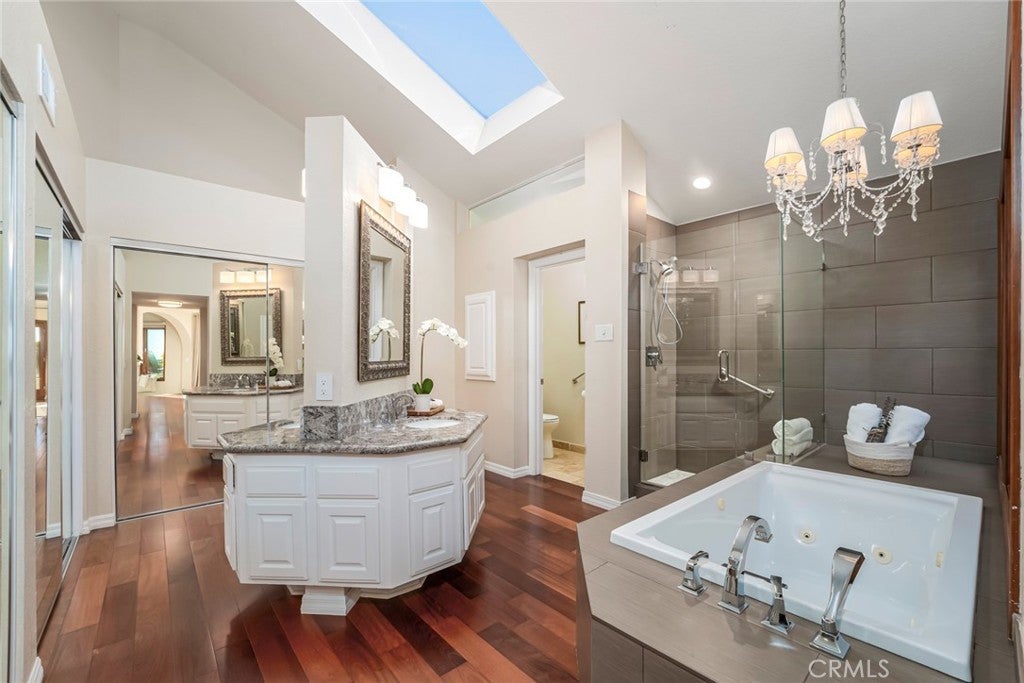 Breathtaking Single-Story Ocean View Retreat in Palacio Del Mar Perched atop the serene hills of southeast San Clemente, this stunning single-level residence in the coveted Palacio Del Mar community offers panoramic ocean views and an exceptional coastal lifestyle. Nestled on a wide, single-loaded street, this rarely available home boasts impeccable curb appeal with a beautifully paved driveway and meticulously designed, low-maintenance landscaping featuring artificial turf and elegant pavers—all oriented to maximize the sweeping Pacific vistas. Step through the custom front gate and into a private courtyard oasis, where the ocean view sets the tone for the tranquil ambiance that flows throughout the home. Inside, soaring vaulted ceilings, graceful arched details, and an abundance of natural light create a warm, open atmosphere. The expansive living room is a showstopper, with cathedral ceilings, a cozy fireplace, and walls of windows framing the endless blue horizon. Adjacent, the formal dining area connects seamlessly to the oversized kitchen—complete with granite countertops, a center island, double ovens, a five-burner cooktop, microwave, and refrigerator. The grand primary suite is a true retreat, offering ocean views from bed, a private office or sitting area with its own fireplace, and direct access to the backyard. The luxurious en-suite bath features dual vanities, a spa tub, walk-in shower, mirrored closets, cherry wood flooring, granite counters, and a skylight that bathes the space in natural light. A spacious secondary bedroom with double doors and a private patio is thoughtfully positioned on the opposite side of the home for added privacy. The second full bath includes a tub/shower combination, perfect for guests or family. Additional highlights include a dedicated laundry room and a fully finished two-car garage with extensive built-in storage. For golf enthusiasts, the San Clemente Municipal Golf Course is just a short golf cart ride away. Prefer the beach? The scenic San Clemente Beach Trail begins at nearby Calafia State Beach and stretches over three miles to the iconic pier and beyond. This is a rare opportunity to own a slice of paradise in one of San Clemente’s most exclusive and peaceful enclaves. Don’t miss your chance to make this ocean-view dream home your reality.
