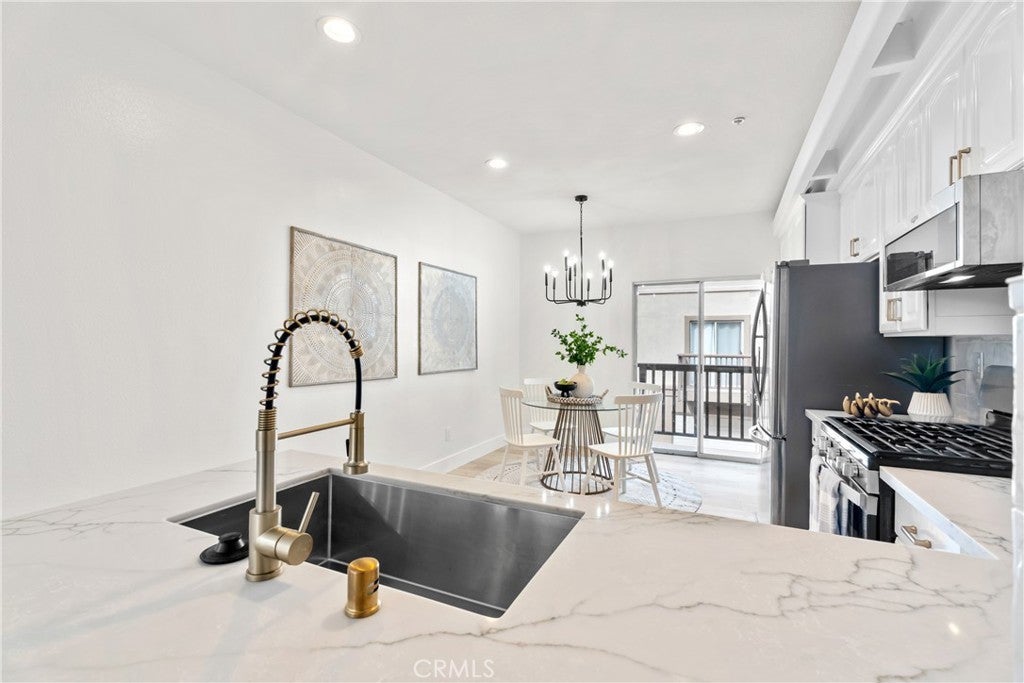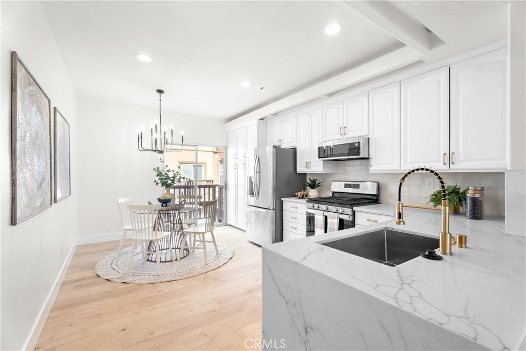 Located in a desirable lakefront community, this beautifully updated townhome features two primary suites and a layout that has been tastefully done throughout. Step inside to discover a seamless blend of contemporary design and everyday functionality, highlighted by an open floor plan that maximizes both space and natural light. The living and dining areas flow effortlessly together, creating an inviting environment perfect for entertaining or relaxing. The chef-inspired kitchen is a true standout, featuring crisp white cabinetry, new quartz countertops, new tile backsplash, new stainless steel appliances, new range, new hood, new sinks, and new fixtures—all thoughtfully selected for a modern, cohesive look. Additional upgrades include new waterproof laminate flooring, new recessed lighting, new outlets, new baseboards, fresh interior paint, smooth scraped ceilings, and double-pane windows. The spacious primary bedroom offers comfort and privacy, while the updated primary bath showcases custom tile flooring, a new vanity, new mirrors, and new mirrored closet doors. Nestled within a quiet, well-maintained neighborhood surrounded by lush trees and greenbelts, this home offers a bright and airy ambiance throughout. Enjoy the convenience of a 2-car garage and a private courtyard—perfect for outdoor dining or peaceful relaxation. The community provides access to exceptional amenities, including a resort-style pool, multiple additional pools, the Rancho Santa Margarita Beach Club, tennis courts, parks, hiking trails, and top-rated schools. Ideally located near abundant shopping, dining, and recreational options, this tastefully upgraded townhome offers both comfort and convenience in a truly sought-after setting.